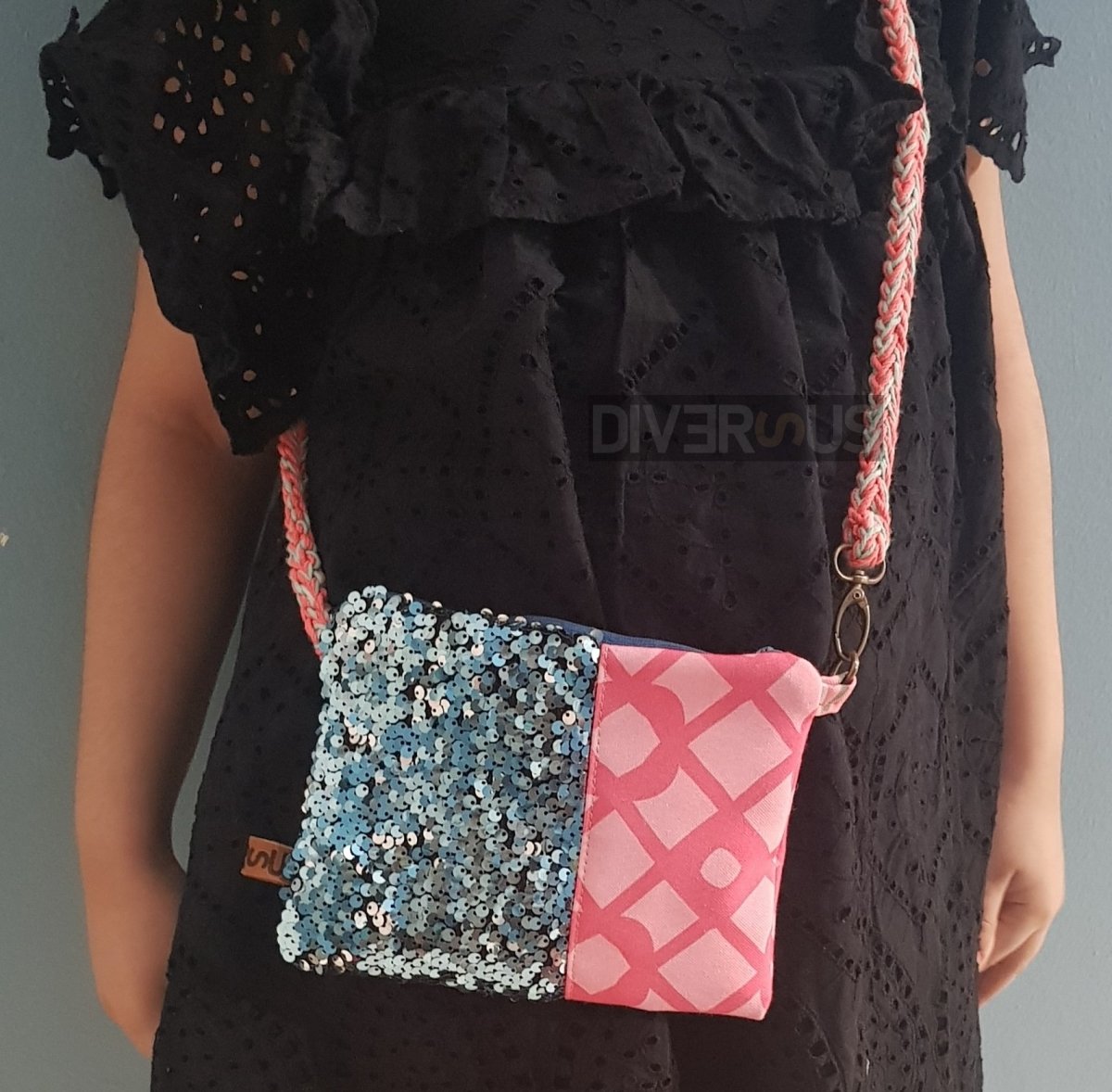 حقيبة كروس للاطفال من القماش القطن والقماش المطرز ترتر ..والذراع كروشيه من الخيط القطني،المقاس ١٥×٢٠ ..متاح تنفيذ مقاس اكبر