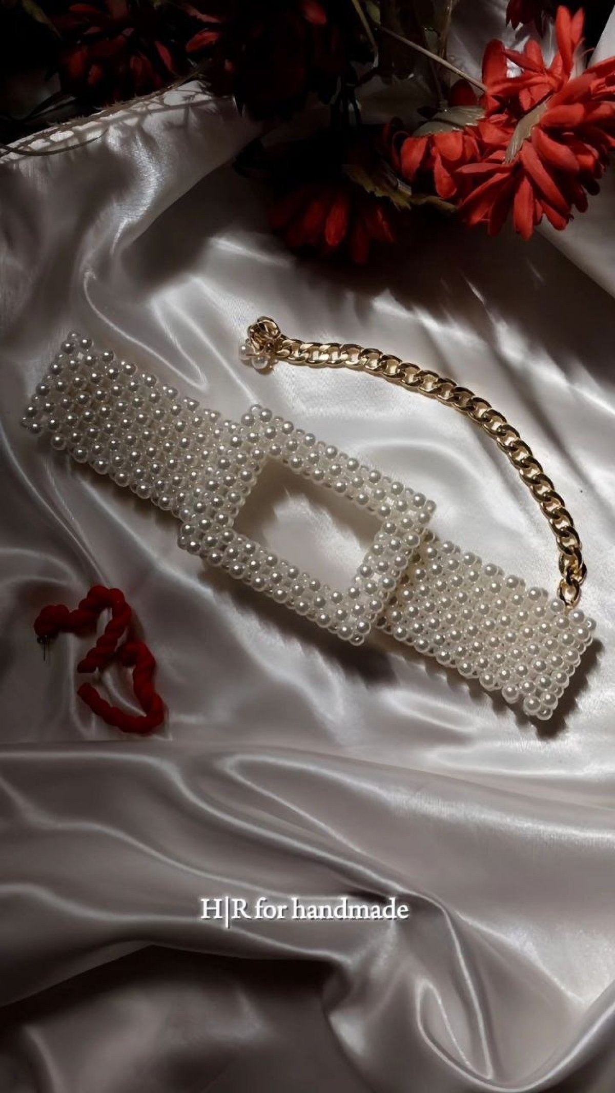 حزام لولي بفتحة مستطيل بالمنتصف بلمسة ذهبية