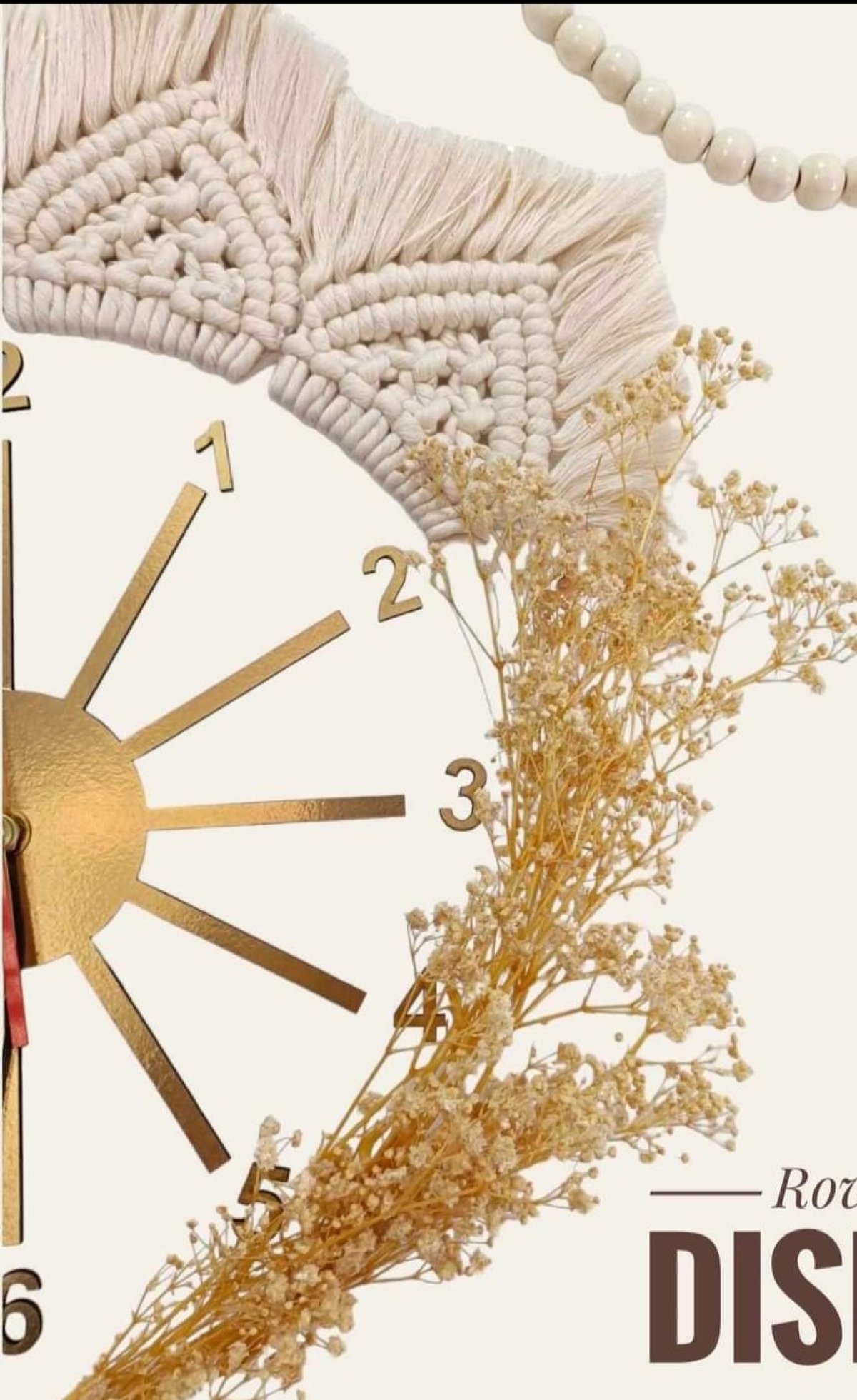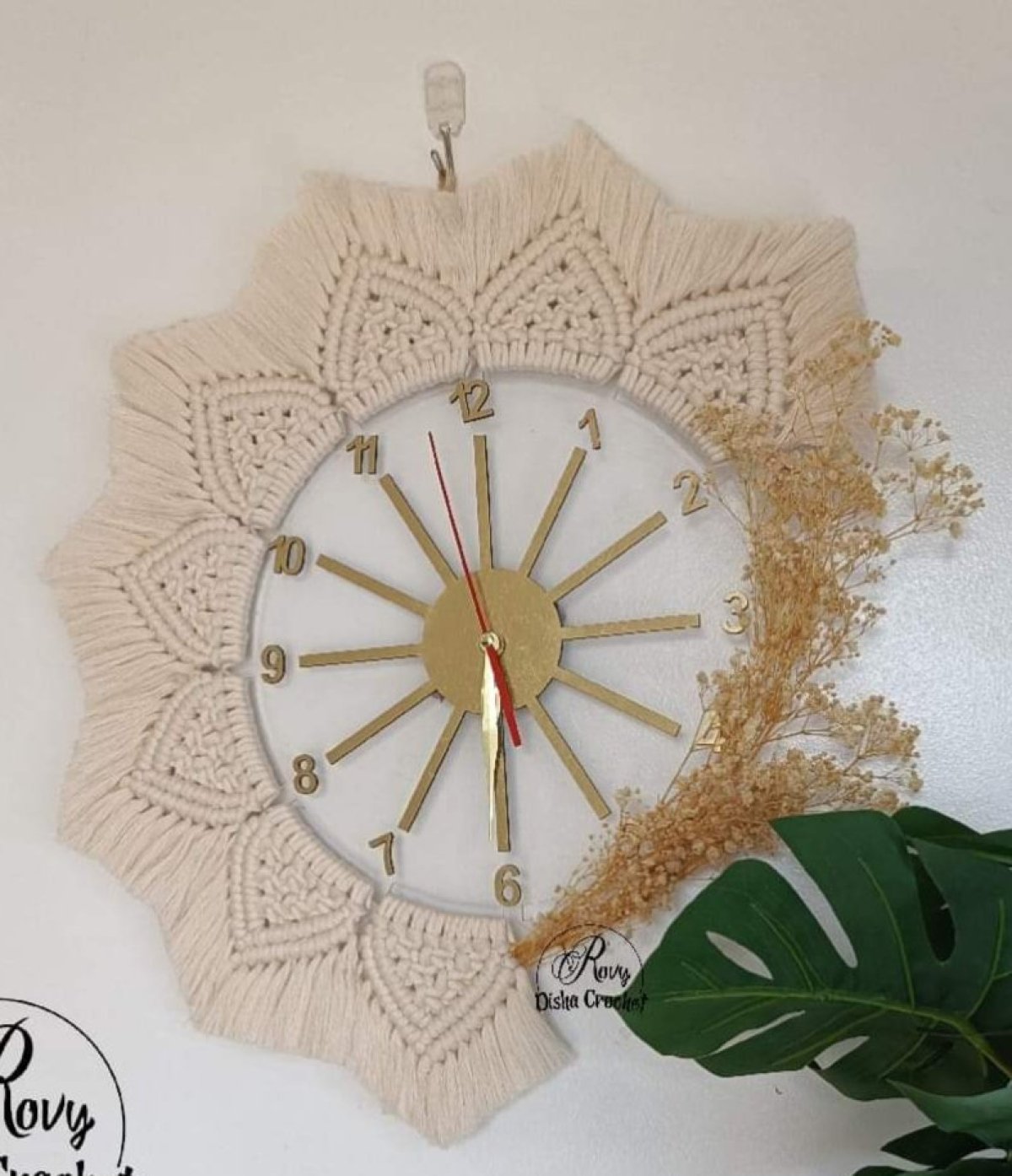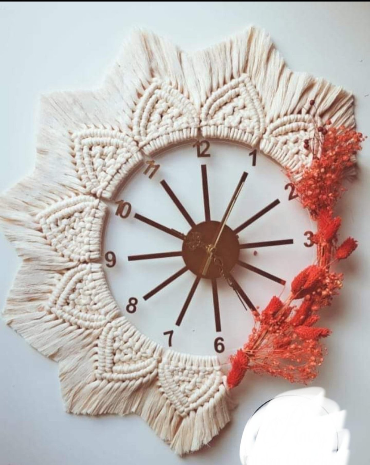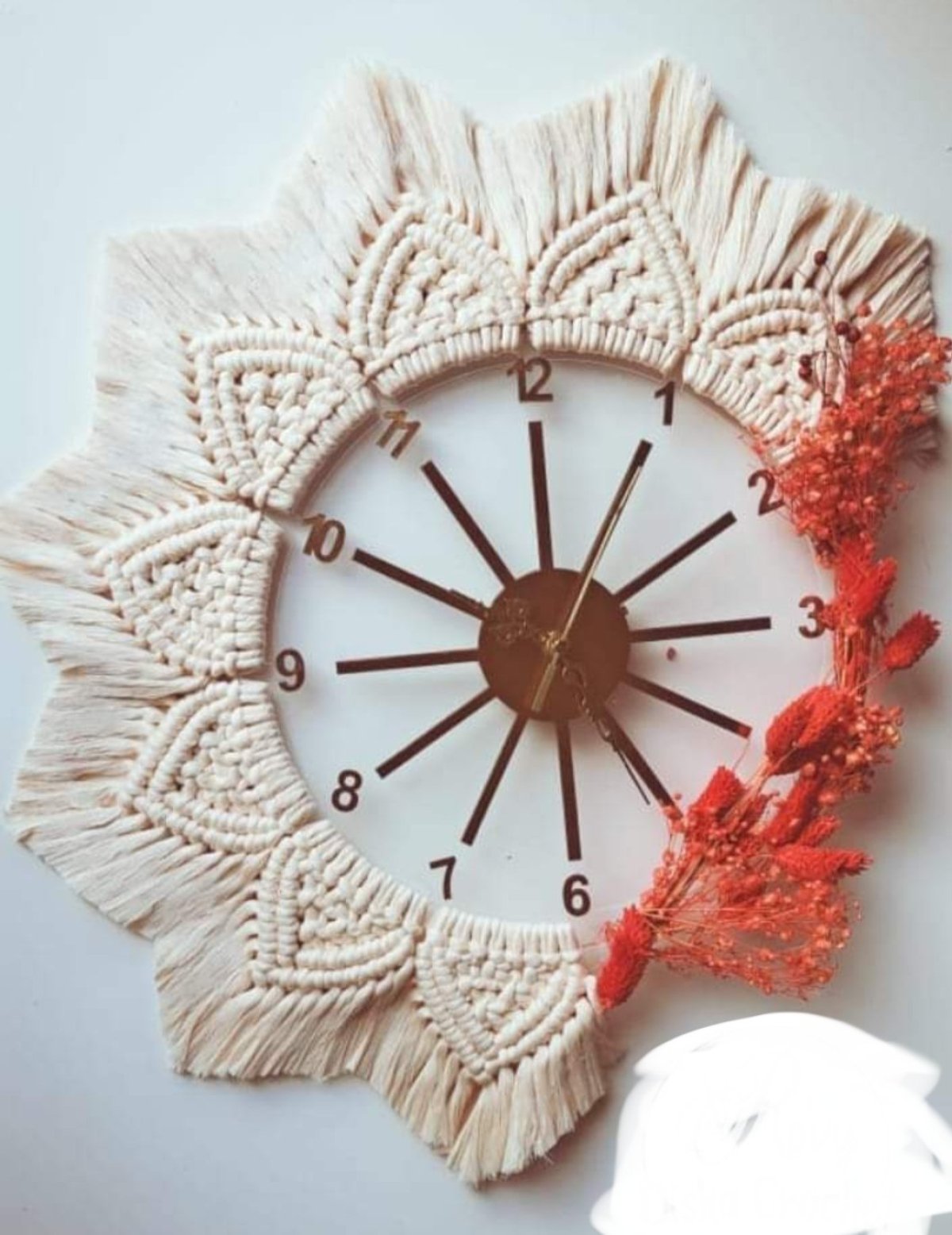 ساعه حائط اكلريك بفن المكرميه تضيف لمسه جمال ورقه ومطعمه بالبيبي فلور المستورد متاح تلوين البيبي فلور باللون المناسب لليفنج او لغرفتك.