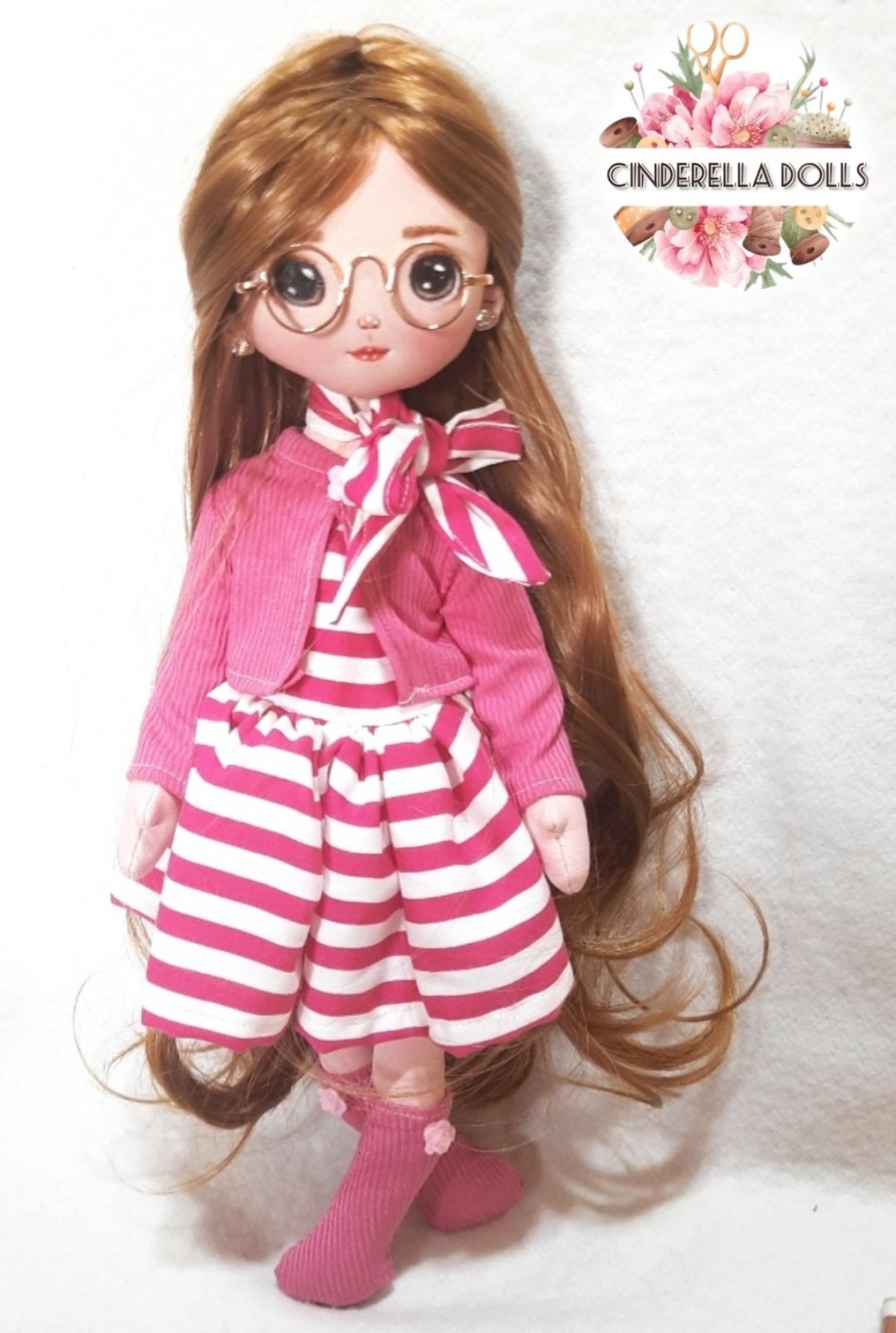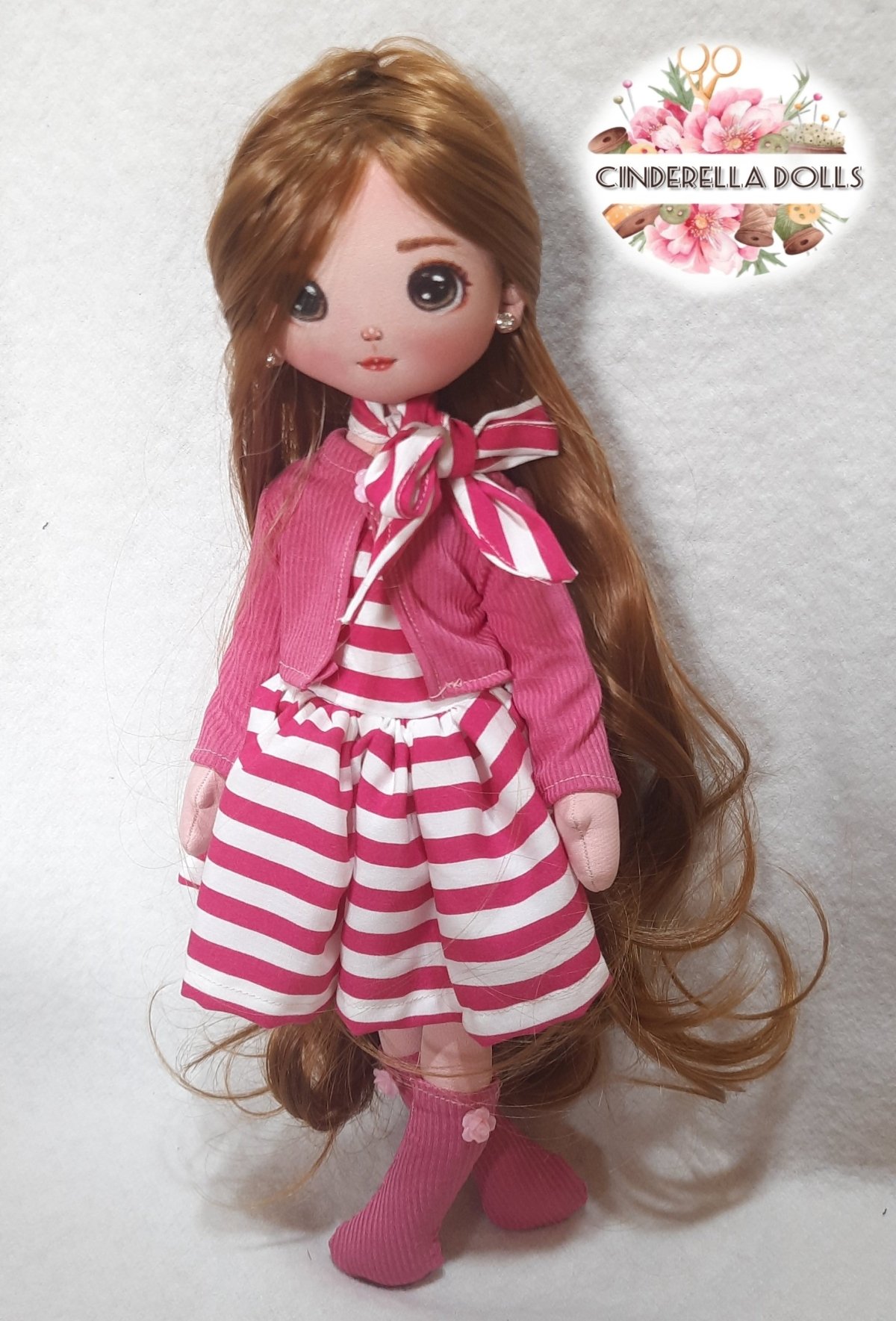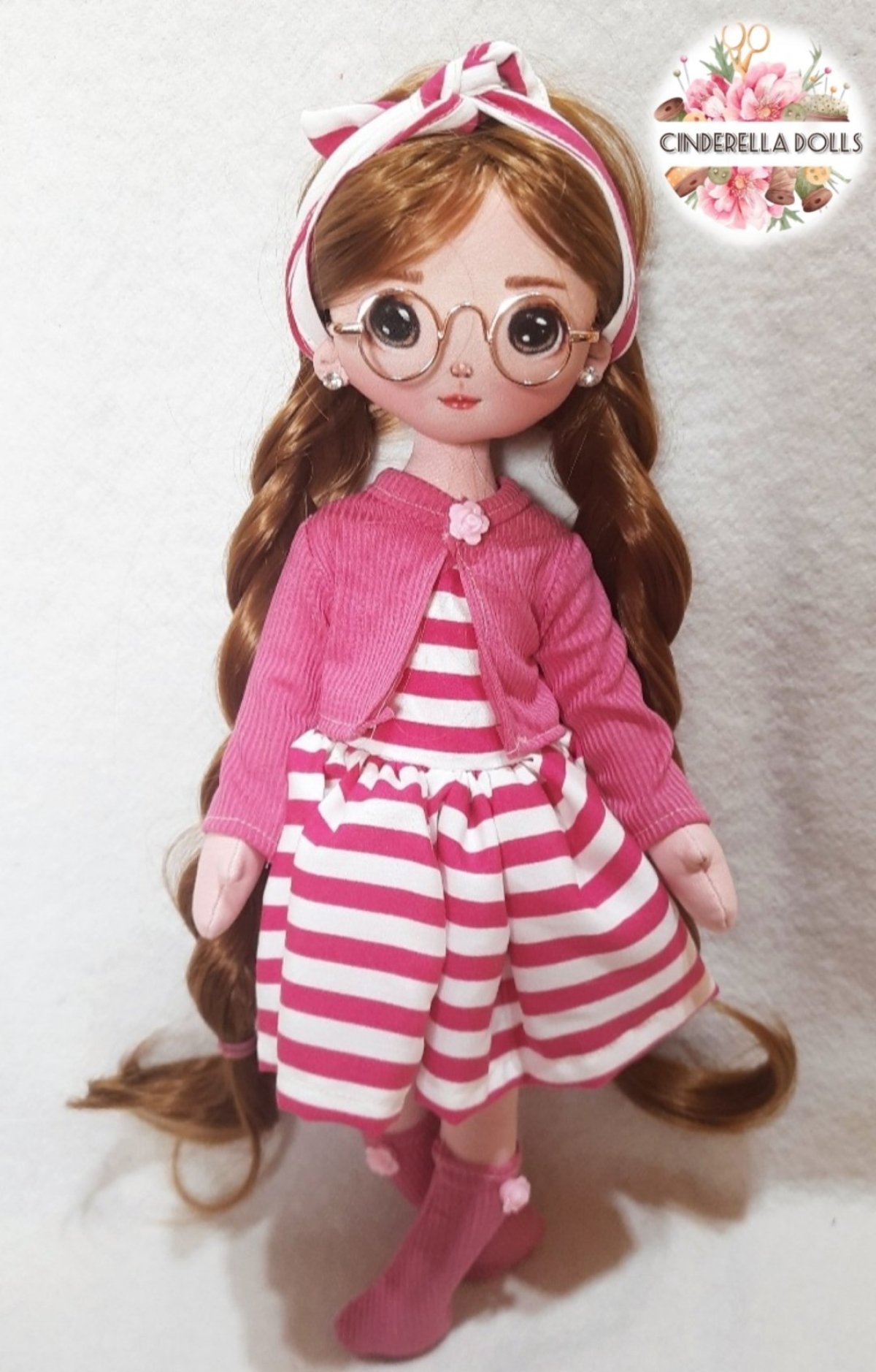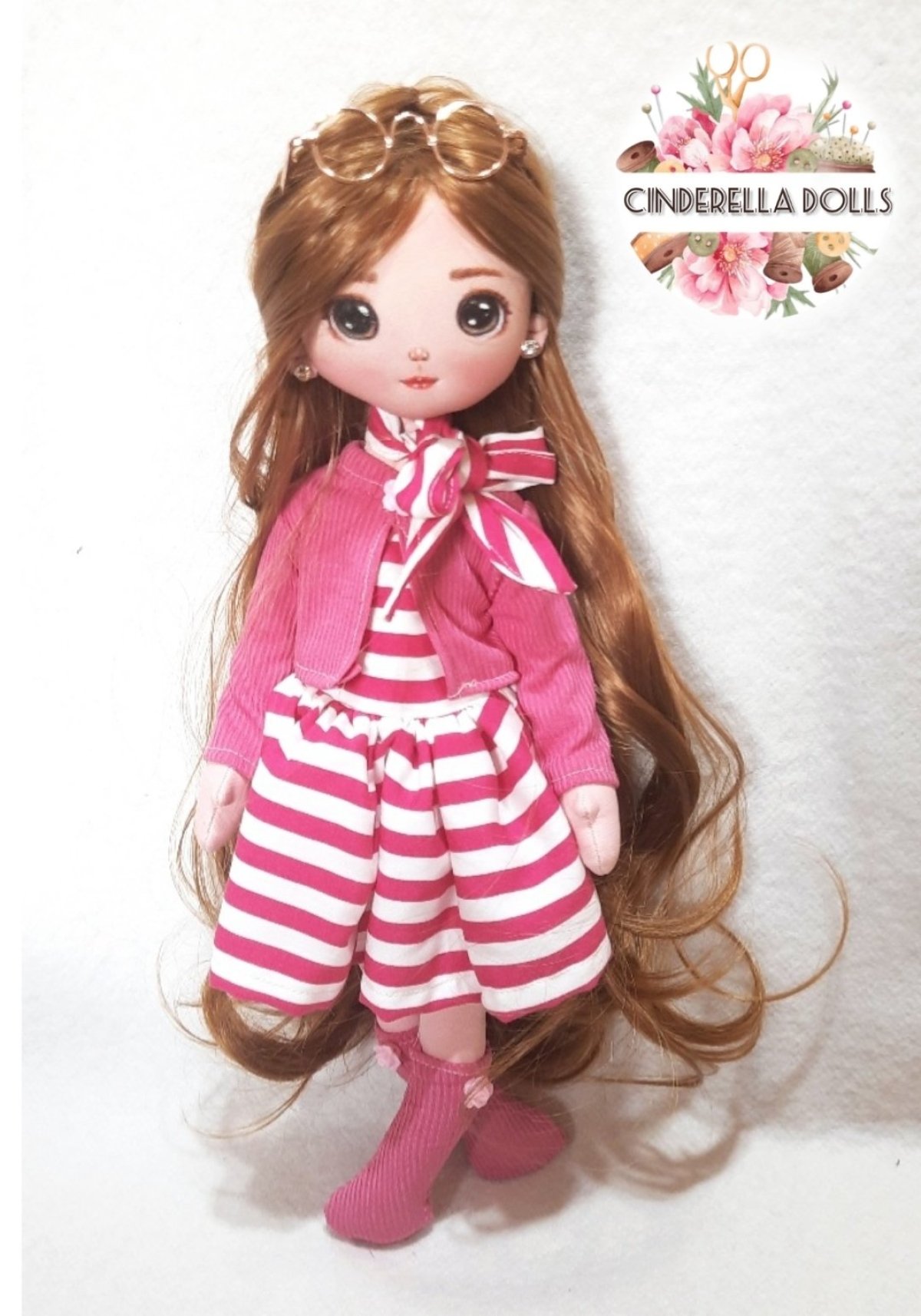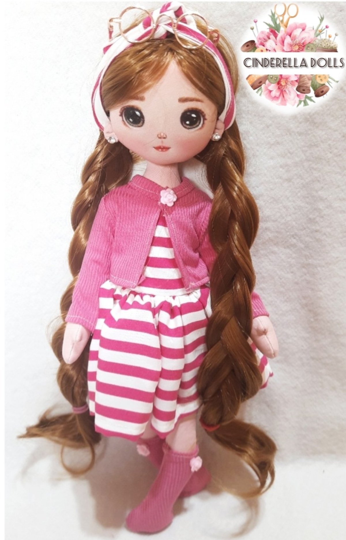 عروسة جوجو هاندميد من القماش طولها ٤٠سم والشعر حراري مخصوص للدمي والملابس يمكن خلعها ومعاها نصاره مخصوصه للدمي