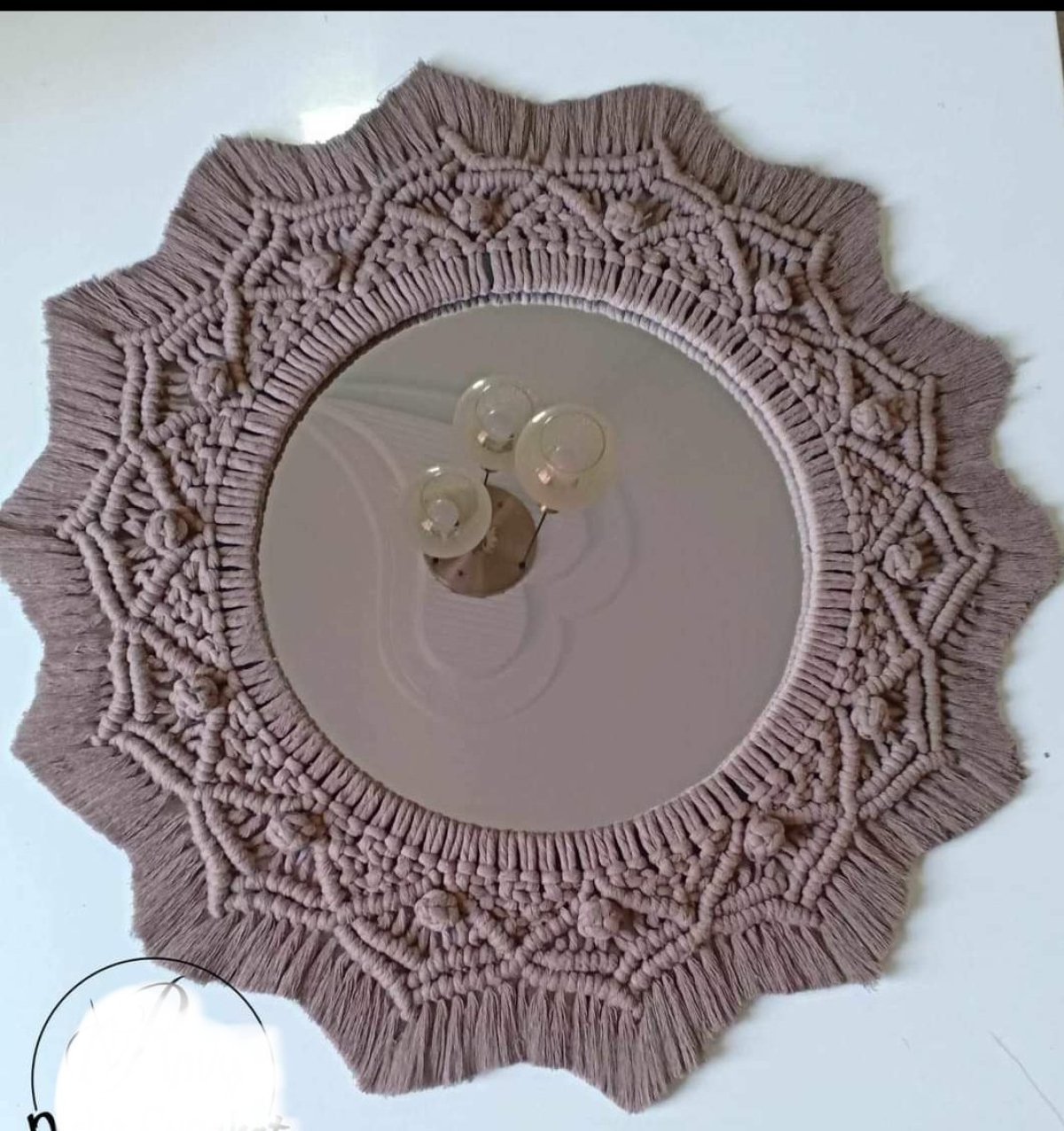مرآة بفن المكرمية مصنوعة من 100 خيط قطن
