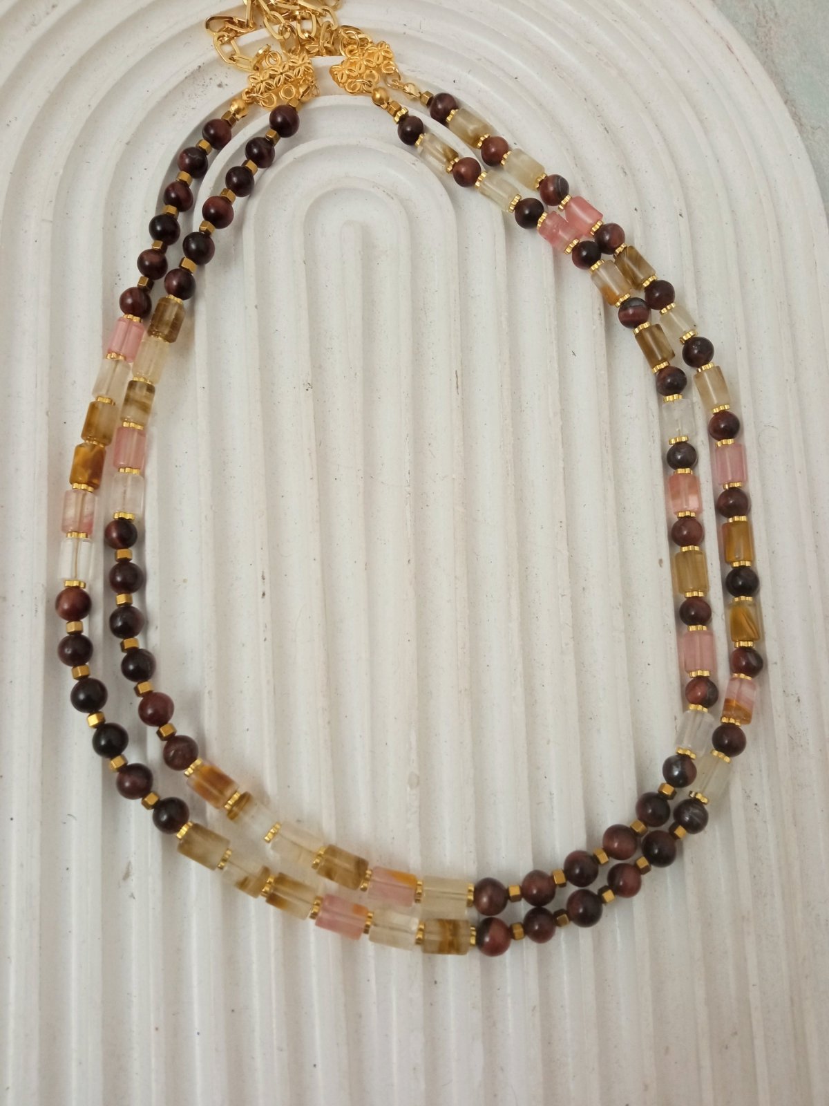 كوليه من حجر ال شيري كوارتز مع حجر ال تايجر آي و فواصل هيماتيت و دهب صيني