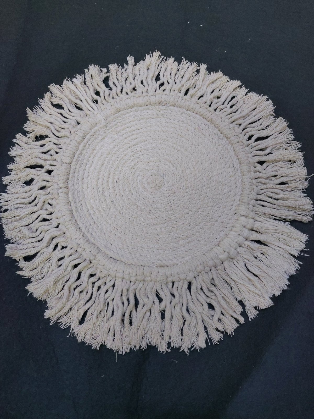كوستر اطباق بوهو اوف وايت مصنوع من خيوط المكرميه
