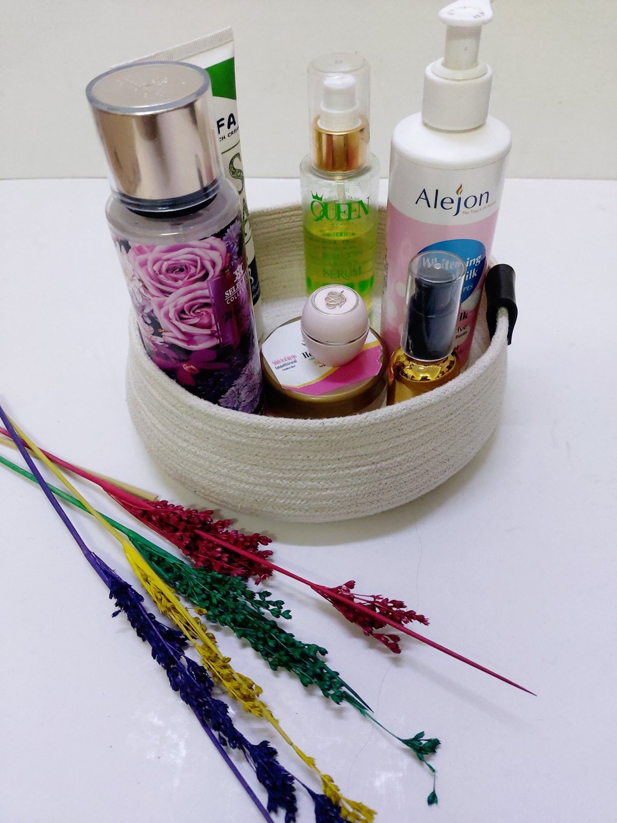 باسكت ديكورى من حبال الكوردون يستخدم كمنظم متعدد الاغراض مثل المكسرات والفاكهه والمكياج والاكسسوارات