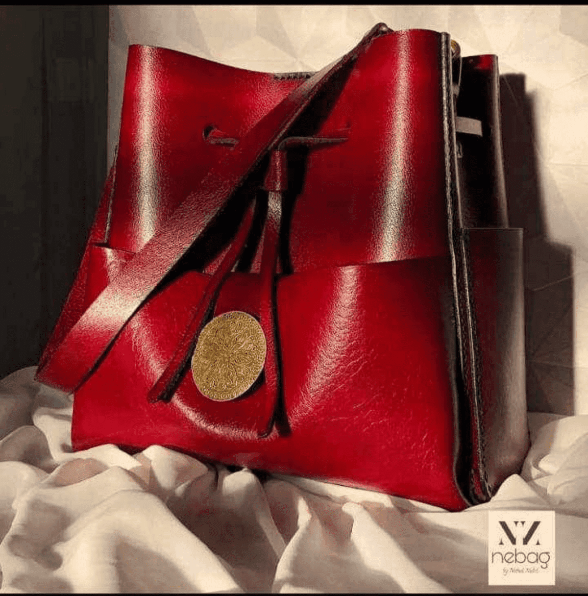 شنطه جلد طبيعي ، مصنوعه يدويا . مقاس 28*27*12 .