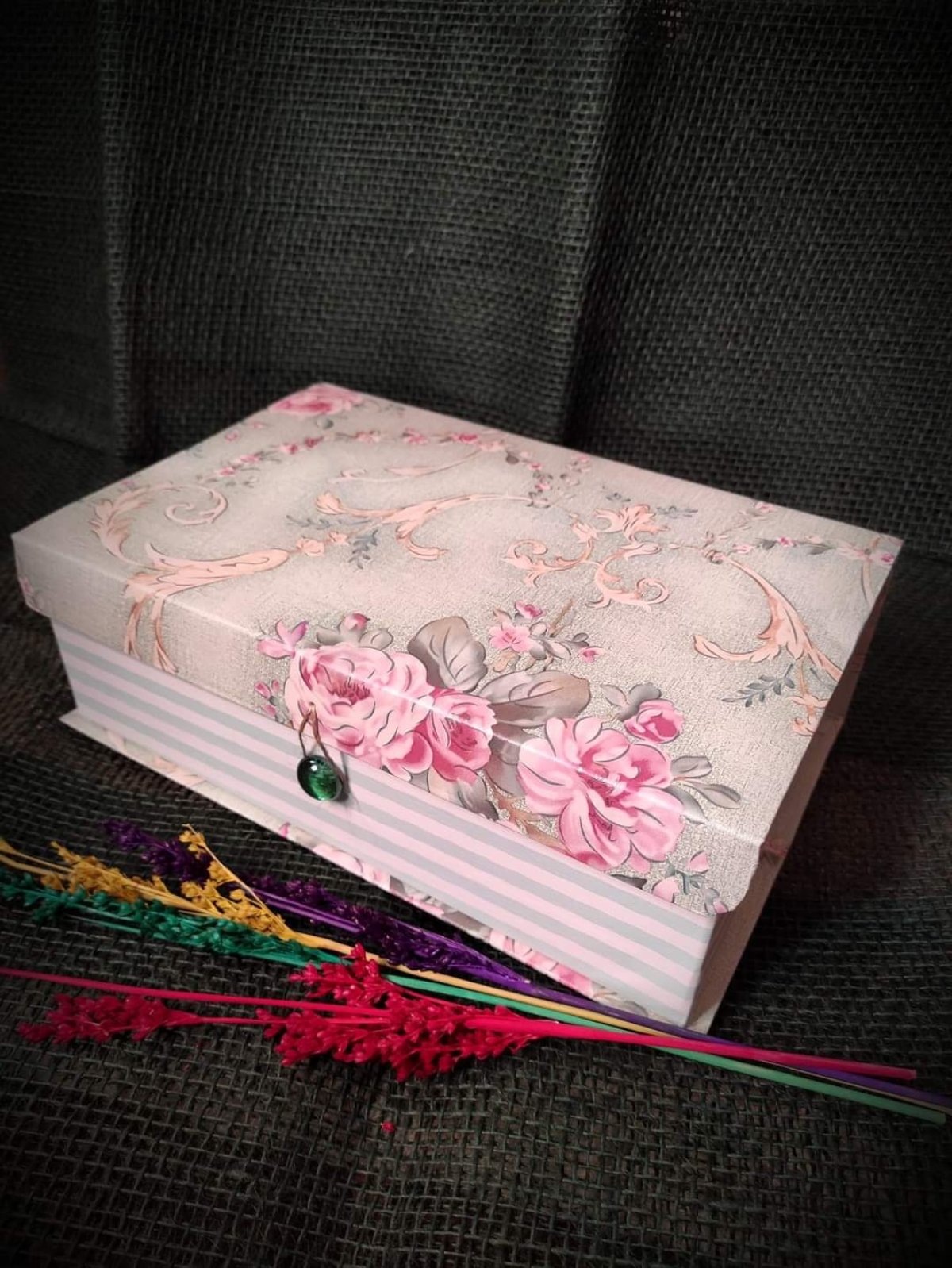 صندوق هدايا مستطيل مصنوع من الكرتون المقوى شكل ورود يمكن تنظيفه بفوطه مبلله
