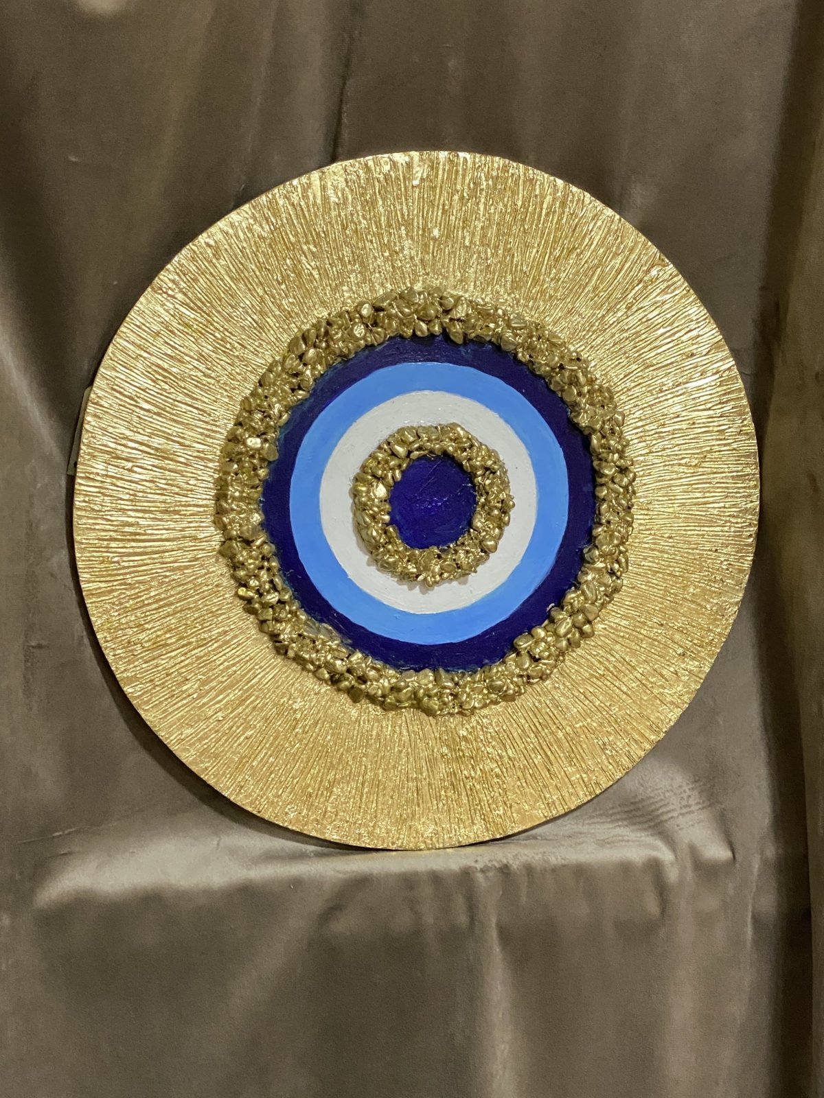 لوحة دائرية مقاس 50*50سم بأوراق ذهبية وأحجار ذهبية ومتاح تنفيذ اي مقاس