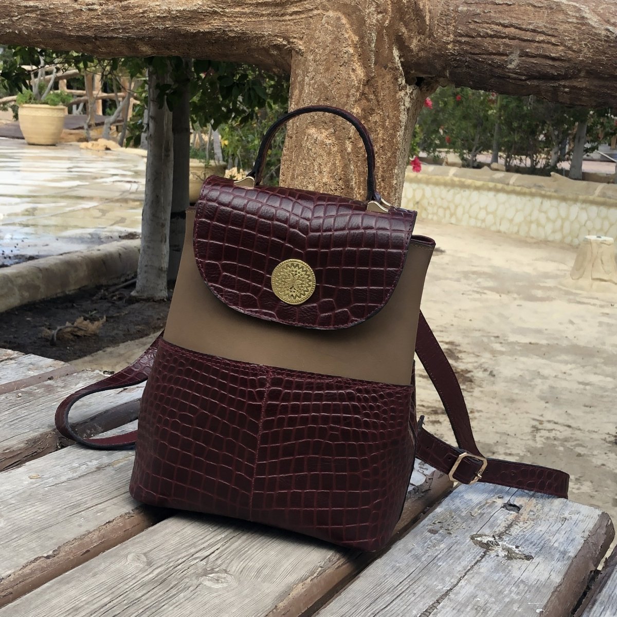 شنطه ضهر جلد طبيعي . مقاس 27*23*14
