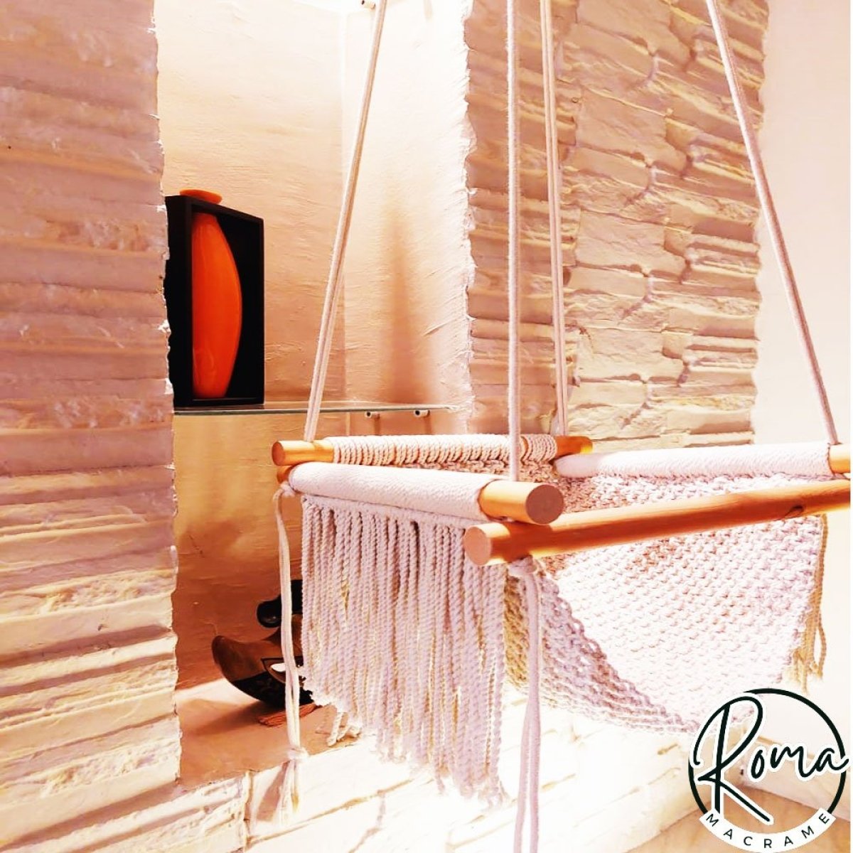 أضف لمسة من الجمال والراحة إلى وقت لعب أطفالك مع أرجوحة المكرمية المصنوعة يدويًا في روما. مصنوعة من مواد متينة وصديقة للبيئة، هذه الأرجوحة التي يبلغ طولها 2 متر مثالية للاستخدام داخل المنزل أو خارجه. يتناغم لونها الأبيض السكري الأنيق مع أي ديكور، في حين يضيف التصميم المكرمي المتقن لمسة بوهيمية جذابة. مثالية للأطفال، فهي توفر لهم مكانًا آمنًا ومريحًا وأنيقًا للاسترخاء والاستمتاع. سهلة التركيب وتمنح ساعات من المرح والراحة.