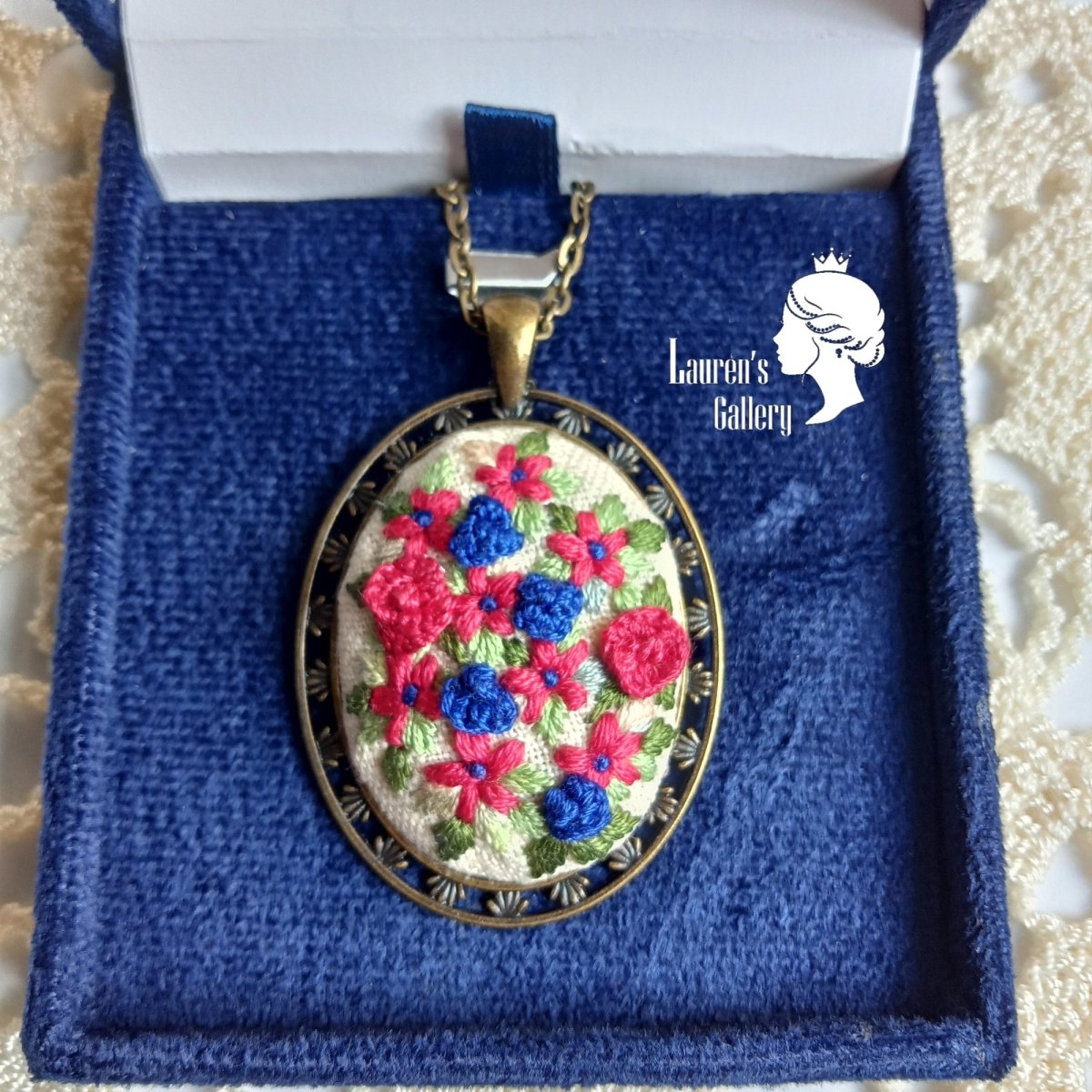 قلادة تابلوه صغير مطرز تطريز دقيق 💕