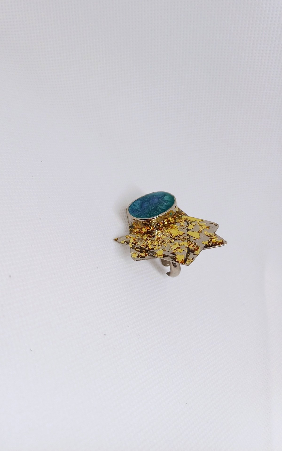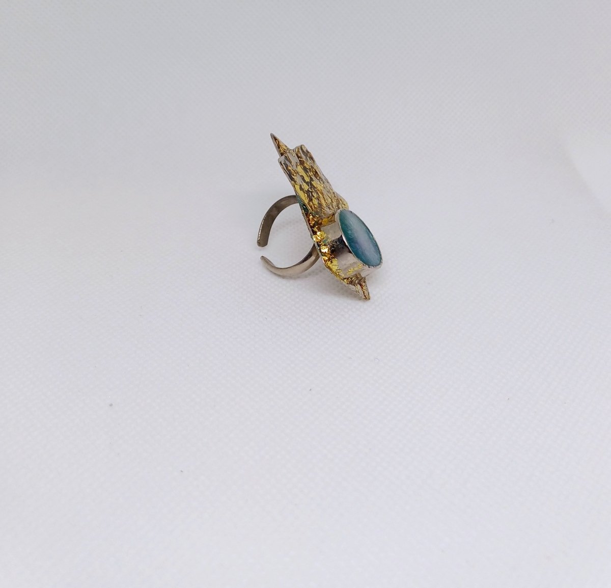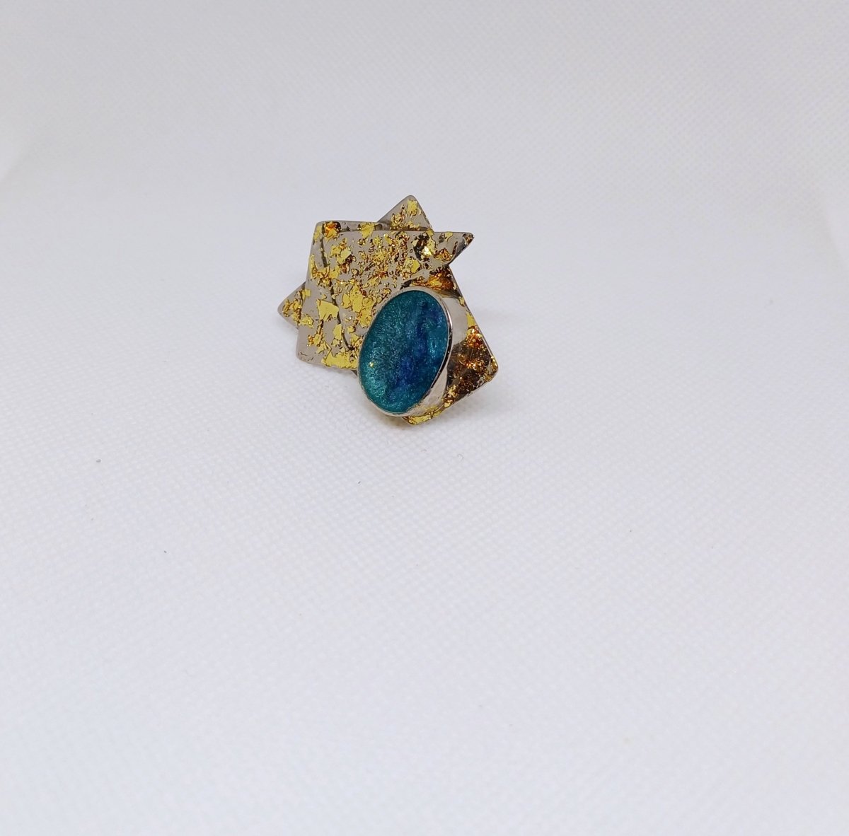 خاتم مميز لتصميم معاصر فريد من النحاس المطلي فضه و مطعم بألوان الريزن هاند ميد بالكامل