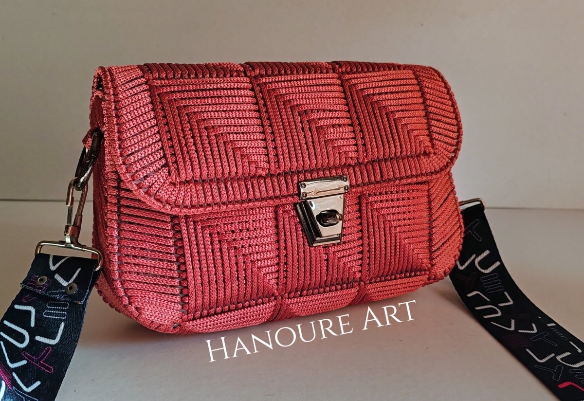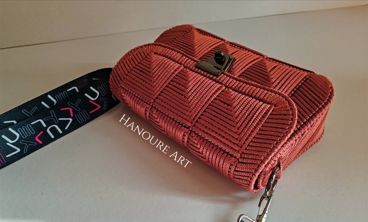الشنطة المصنوعة من شبك البلاستيك و خيط مكرميه البولستر يمكن أن تحمل مرآة المكياج والنظارات والمحفظة والمفاتيح وسماعة الأذن والكاميرا الصغيرة والموبايل وغيرها من الأشياء الصغيرة. إذا كنتِ من محبي الموضة، فهذه الشنطة الخيار الأفضل لك. هذه الشنطة تمنحكِ مظهرًا فريدًا وأنيقًا.