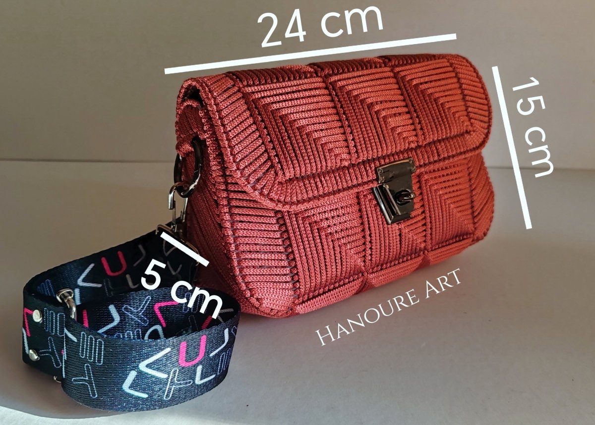 ملاحظة: هذه الشنطة المصنوعة من خيط مكرميه البوليستر اللامع نسيج يدوي خالص، لذلك يرجى عدم وضع الكثير من الأشياء الثقيلة فيها.