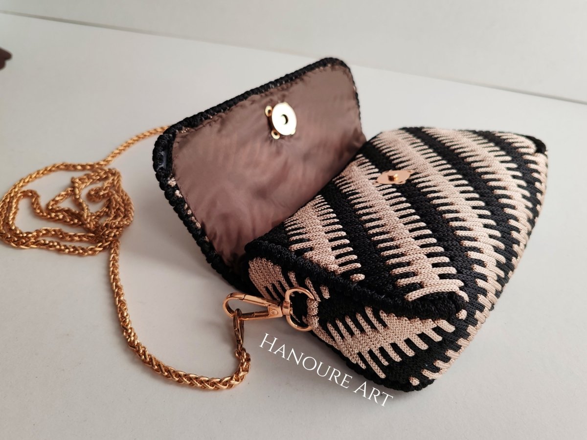 ملاحظة: هذه الشنطة المصنوعة من خيط مكرميه البوليستر اللامع نسيج يدوي خالص، لذلك يرجى عدم وضع الكثير من الأشياء الثقيلة فيها.