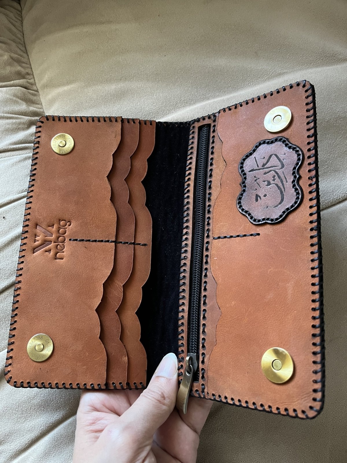 محفظه جلد طبيعي. مقاس 20*10. تحتوي على 8 اماكن للكروت، و جيب بسوسته و مكان للموبايل. متاحه في عده الالوان