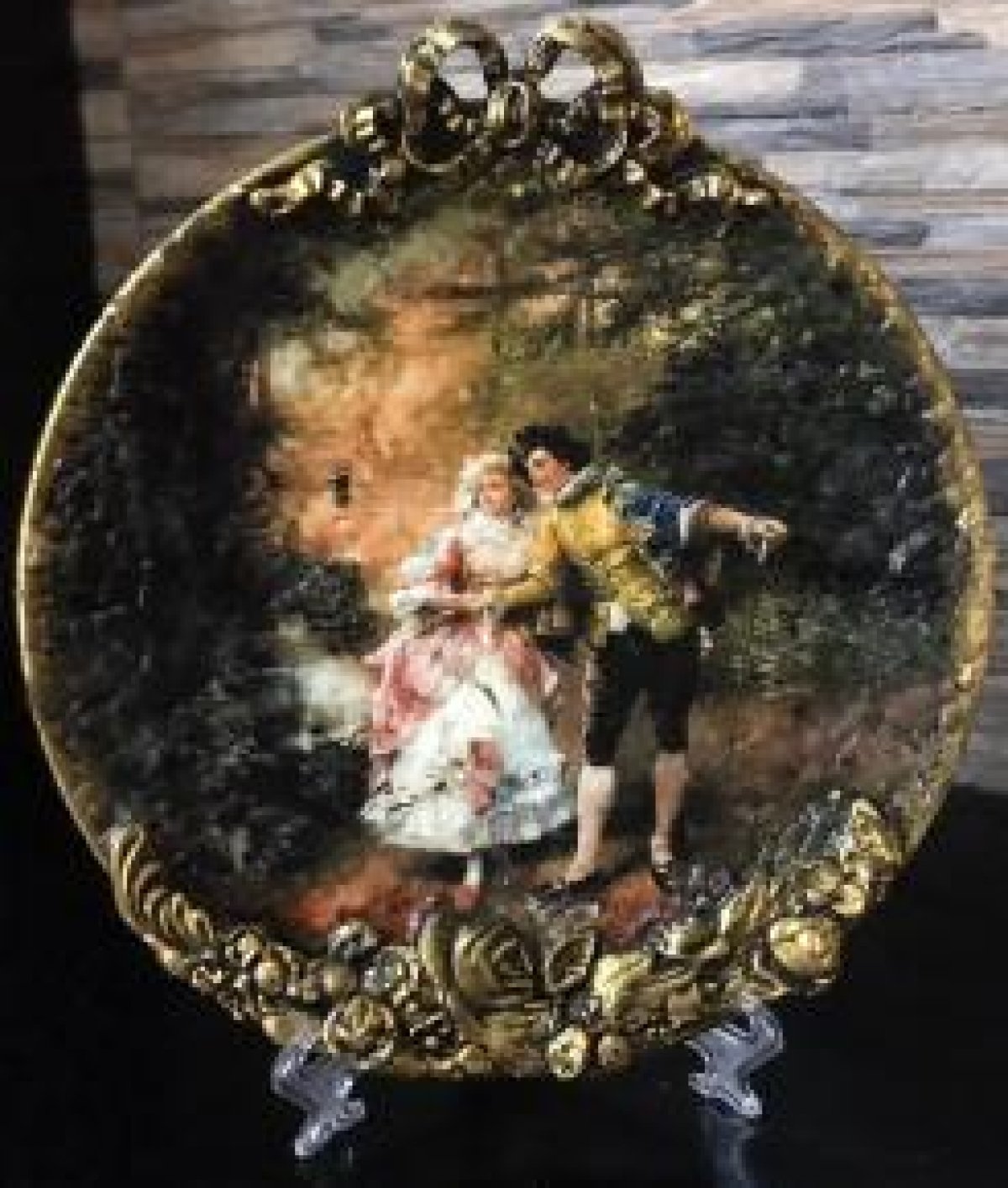 ديكوباج من البورسلين مصنوع يدويًا بقطر 30، مصنوع خصيصًا لعشاقين، يتضمن مهارة فنية معقدة تمزج بين الخزف الرقيق وتقنيات الديكوباج. ترمز هذه القطعة الفريدة إلى الحب، وهي مزينة بزخارف شخصية، ربما الأحرف الأولى أو رموز ذات معنى، مما ينضح بالأناقة والرومانسية. كل ضربة فرشاة تلتقط جوهر المودة، مما يجعلها تذكارًا خالدًا للحظات العزيزة.