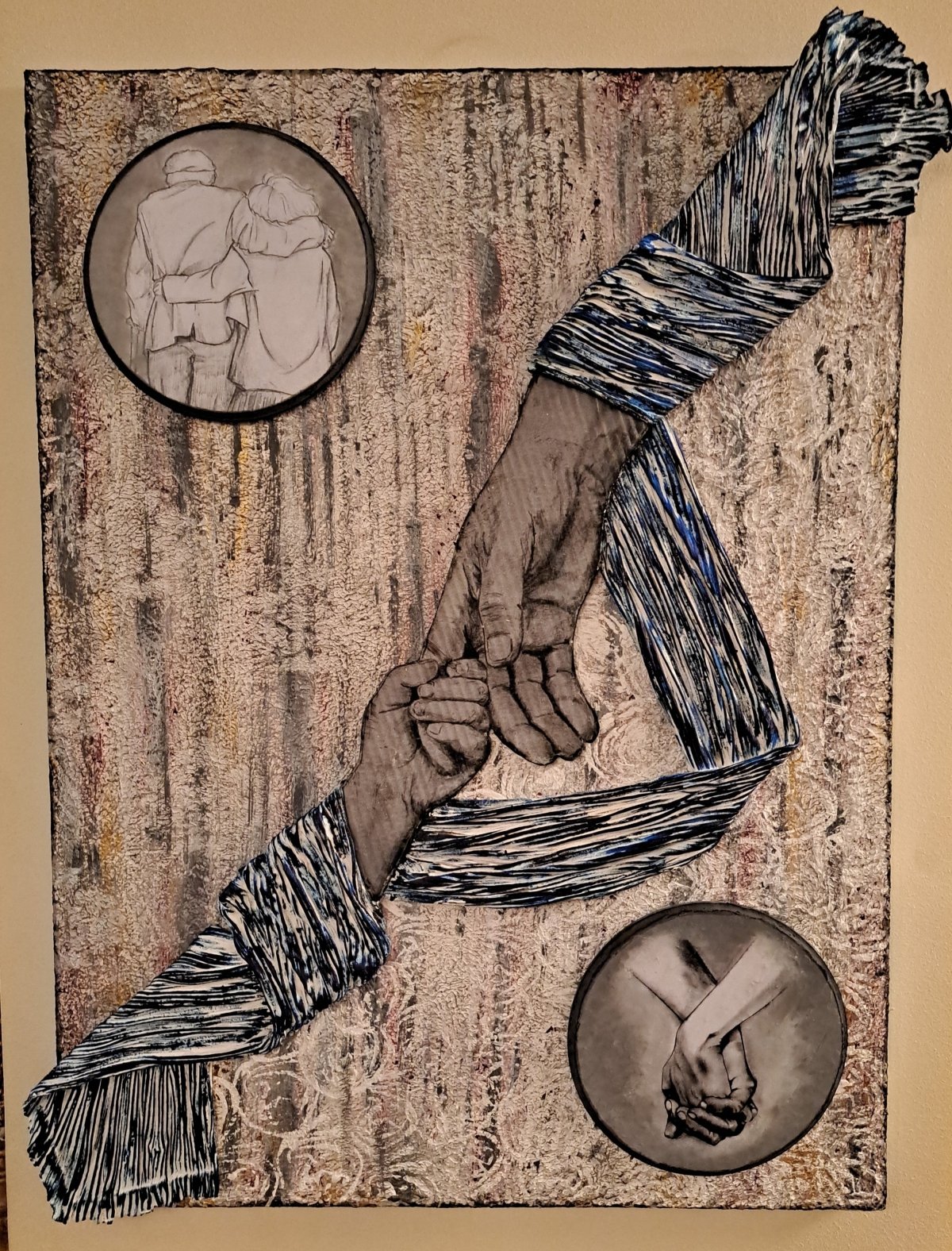 تابلوه كانفس مقاس 60*80 تأسيس شغل جداريات مضاف عليه ٢ تابلوه دائري بفن الديكوباج في الأطراف وفي الوسط تصميم ثلاثي الابعاد باستخدام الورق المقوي مع القماش المقوي الوان اكليريك