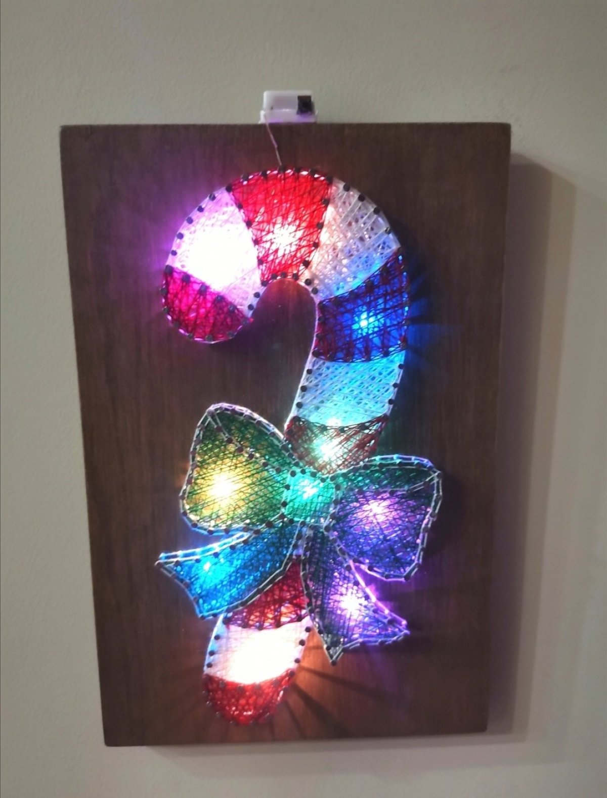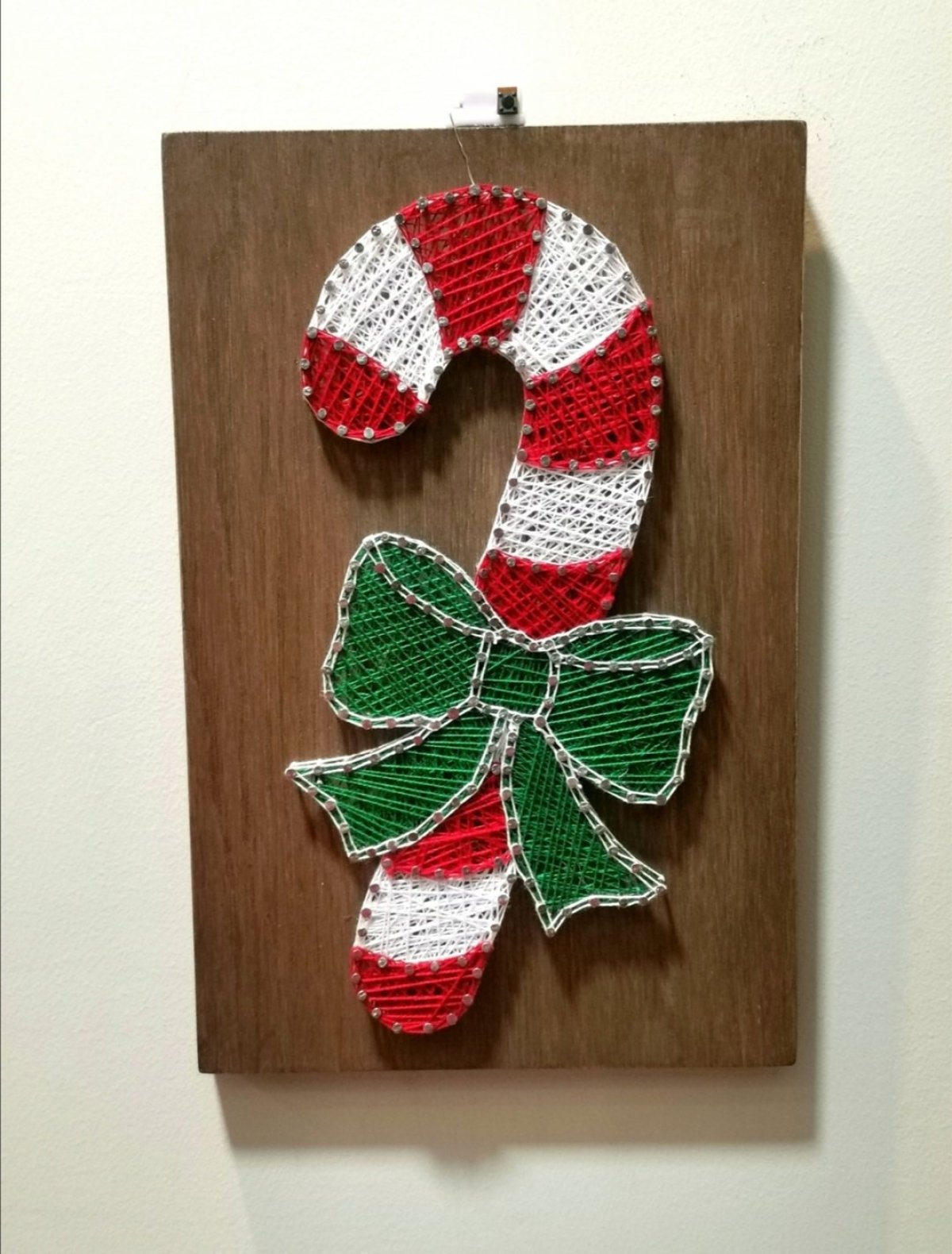 تابلو حلوى الكريسماس مرسومة بالخيط والمسمار او مايعرف باسم سترنج ارت