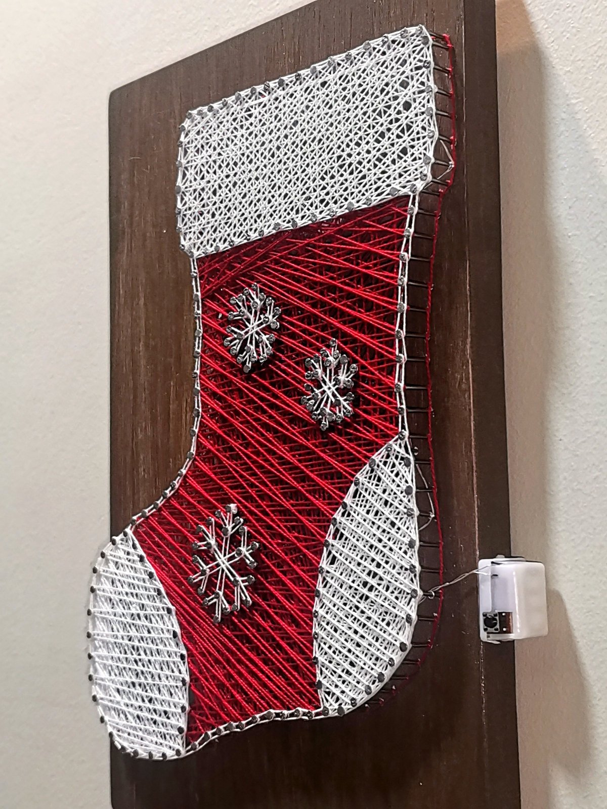 تابلو شراب كريسماس مرسوم بالخيط والمسمار او مايعرف باسم سترنج ارت