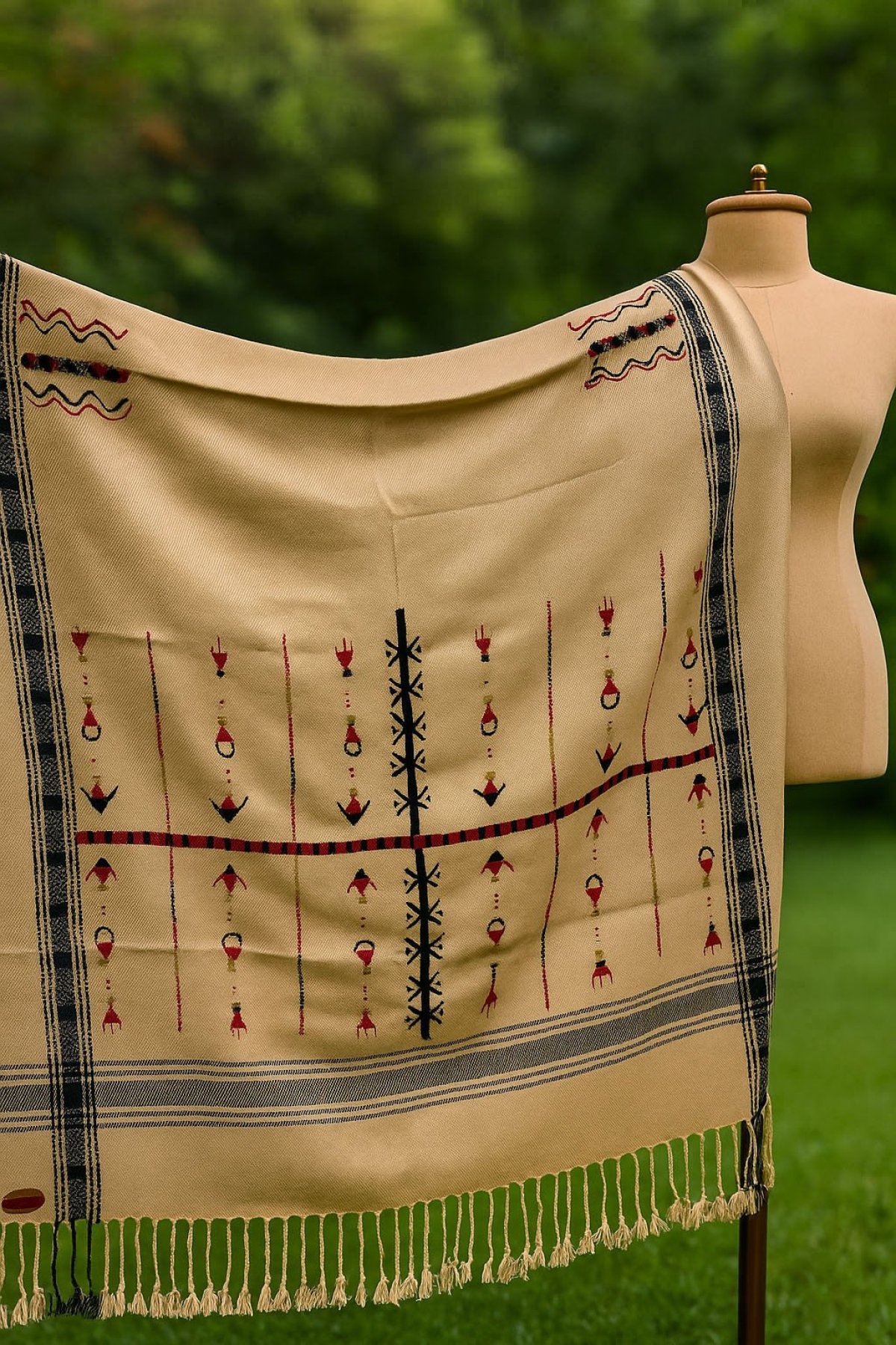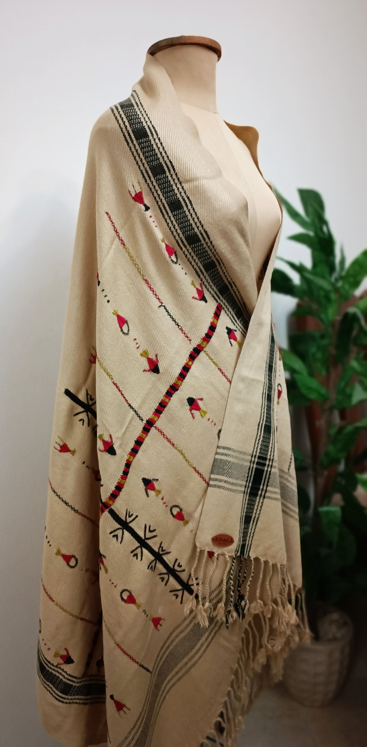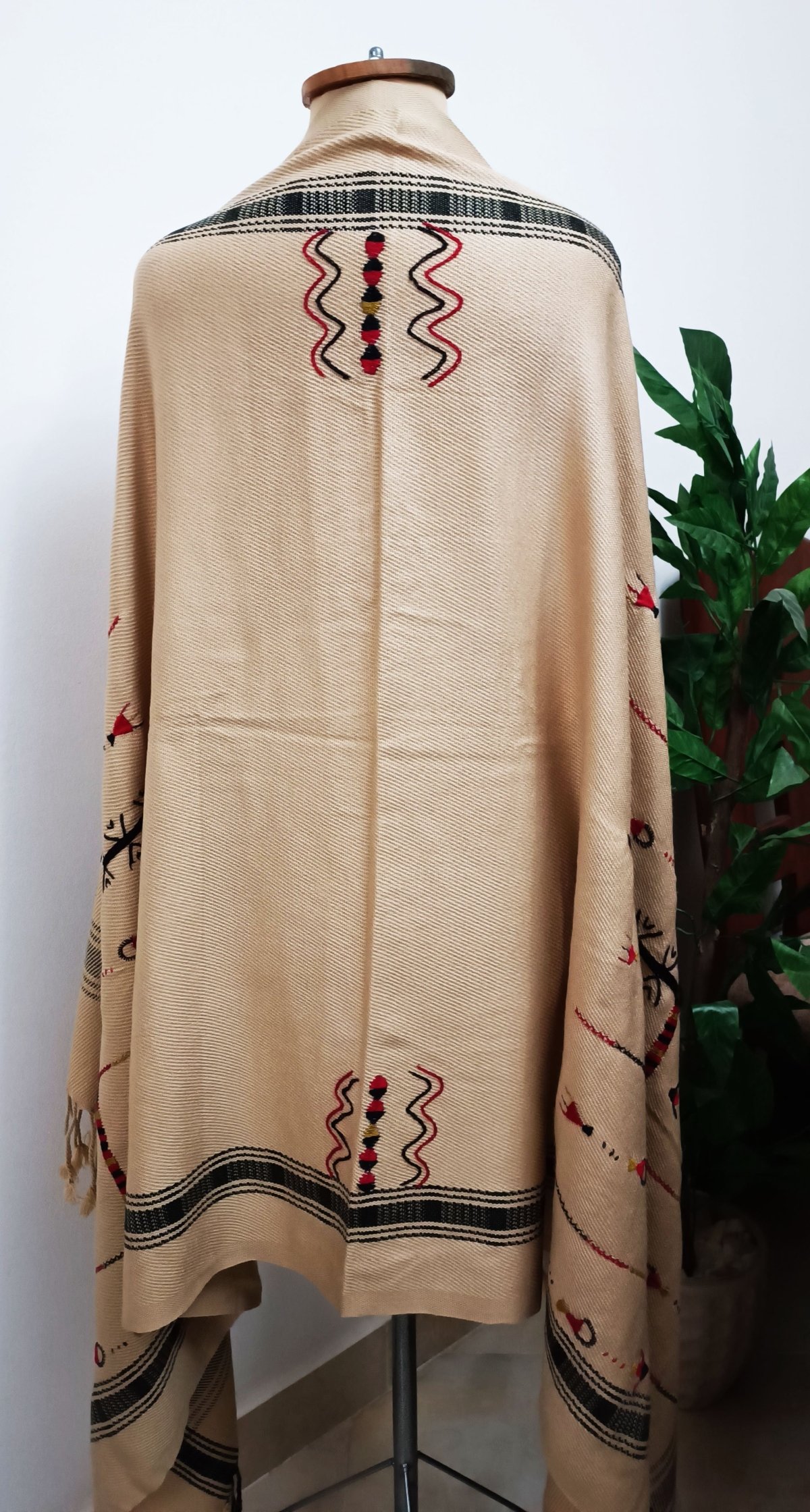شال صوف خفيف مطرز يدويًا بأيدى سيدات واحة سيوة الموهوبات. المقاس: ١٩٠*٩٠ سم. - زخارف تقليدية من تراث سيوة بتصميم جديد بخيوط ثابتة وألوان مميزة. يُنظف تنظيفًا جافًا أو يُغسل يدويًا بدون عصر. - يُكوى على درجة حرارة منخفضة.