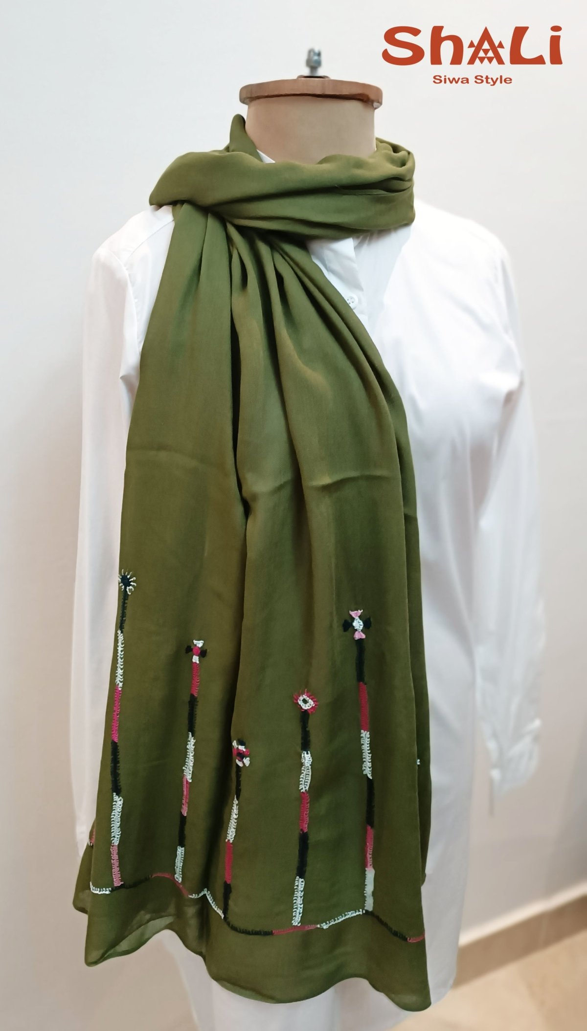 وشاح مطرز يدويًا من واحة سيوة. قماش فوال قطني ناعم.