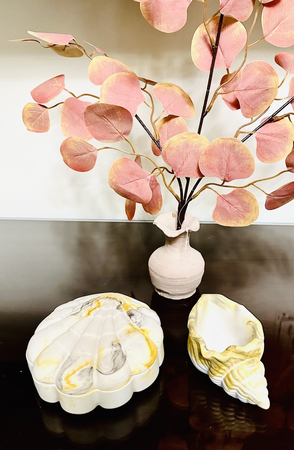 صدف مصنوع من الكونكرين يمكن استخدامه في تخزين الاكسسوارات يعطي شكل ديكوري رائع ومتاح تغيير اللون