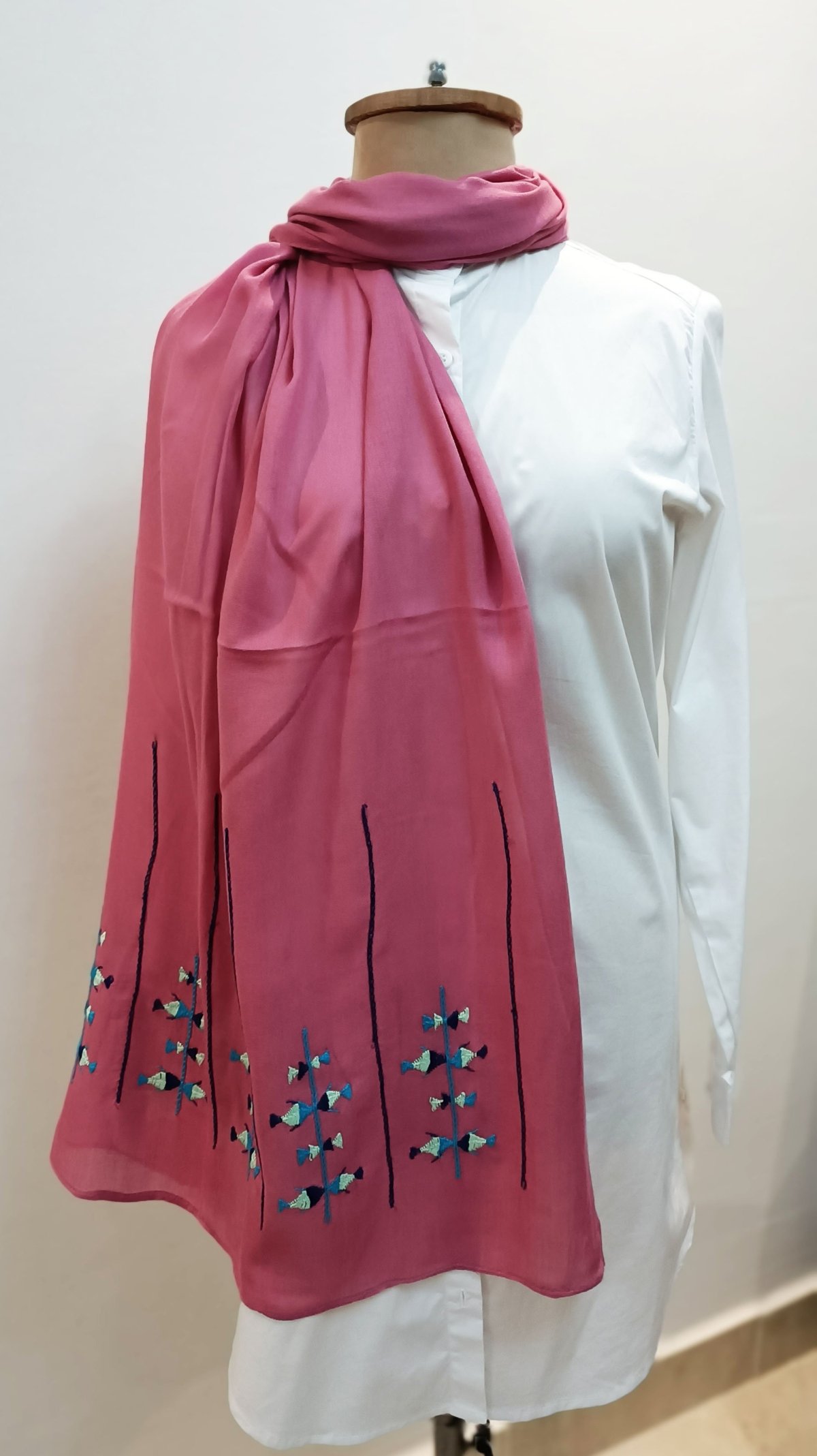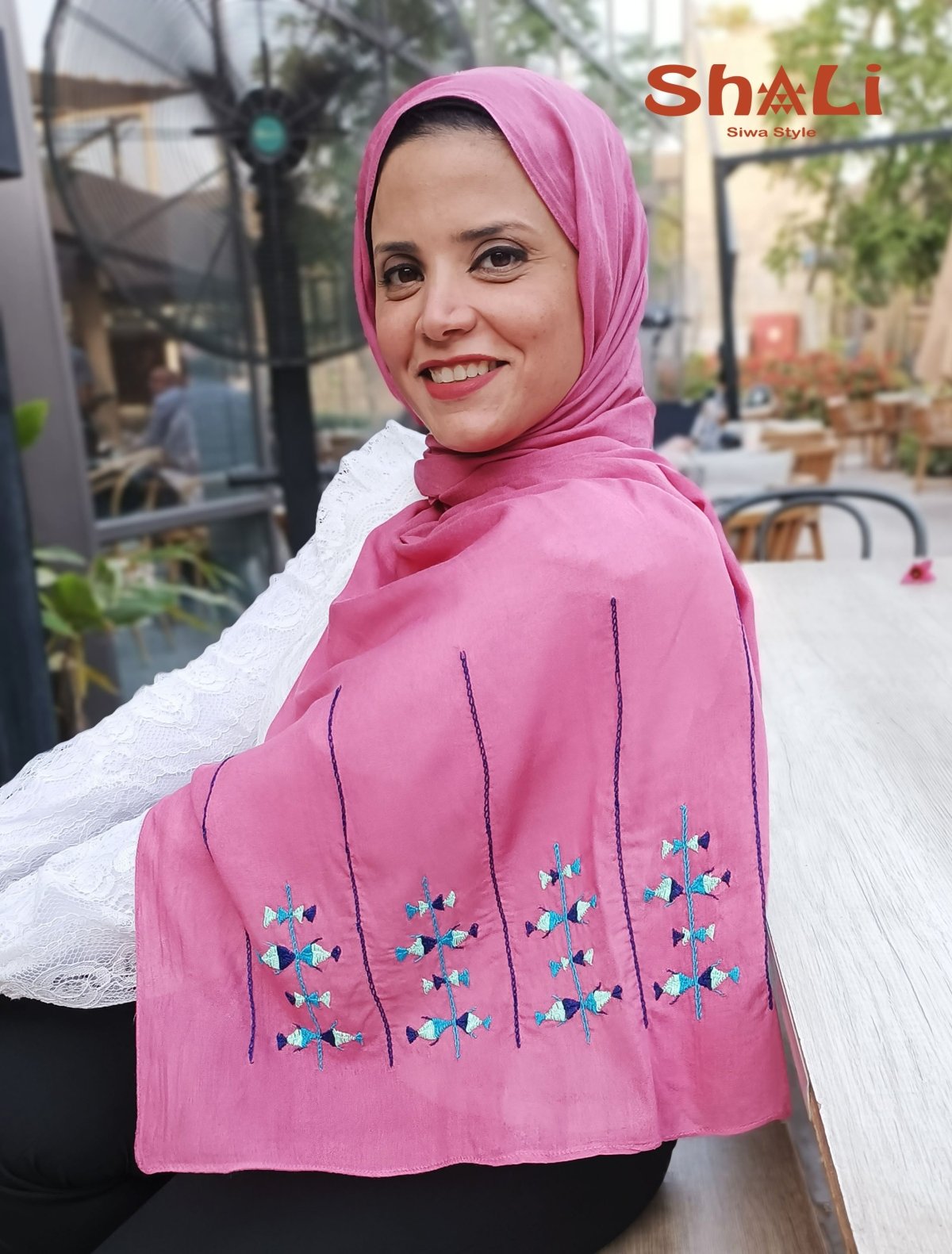 طرحة او اسكارف قطن ناعم مطرزة يدوى فى سيوة اللون وردى تطريز كثيف فخم بخيوط قطنية تنظيف جاف - اوغسل يدوى بدون عصر تكوى على درجة حرارة هادئة