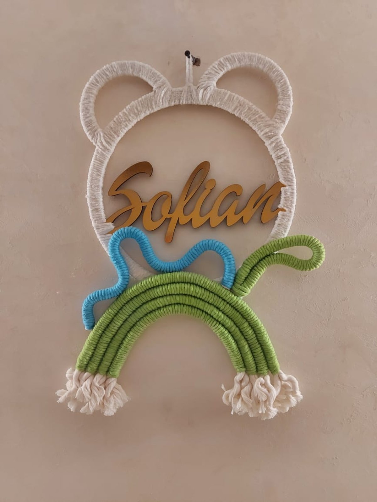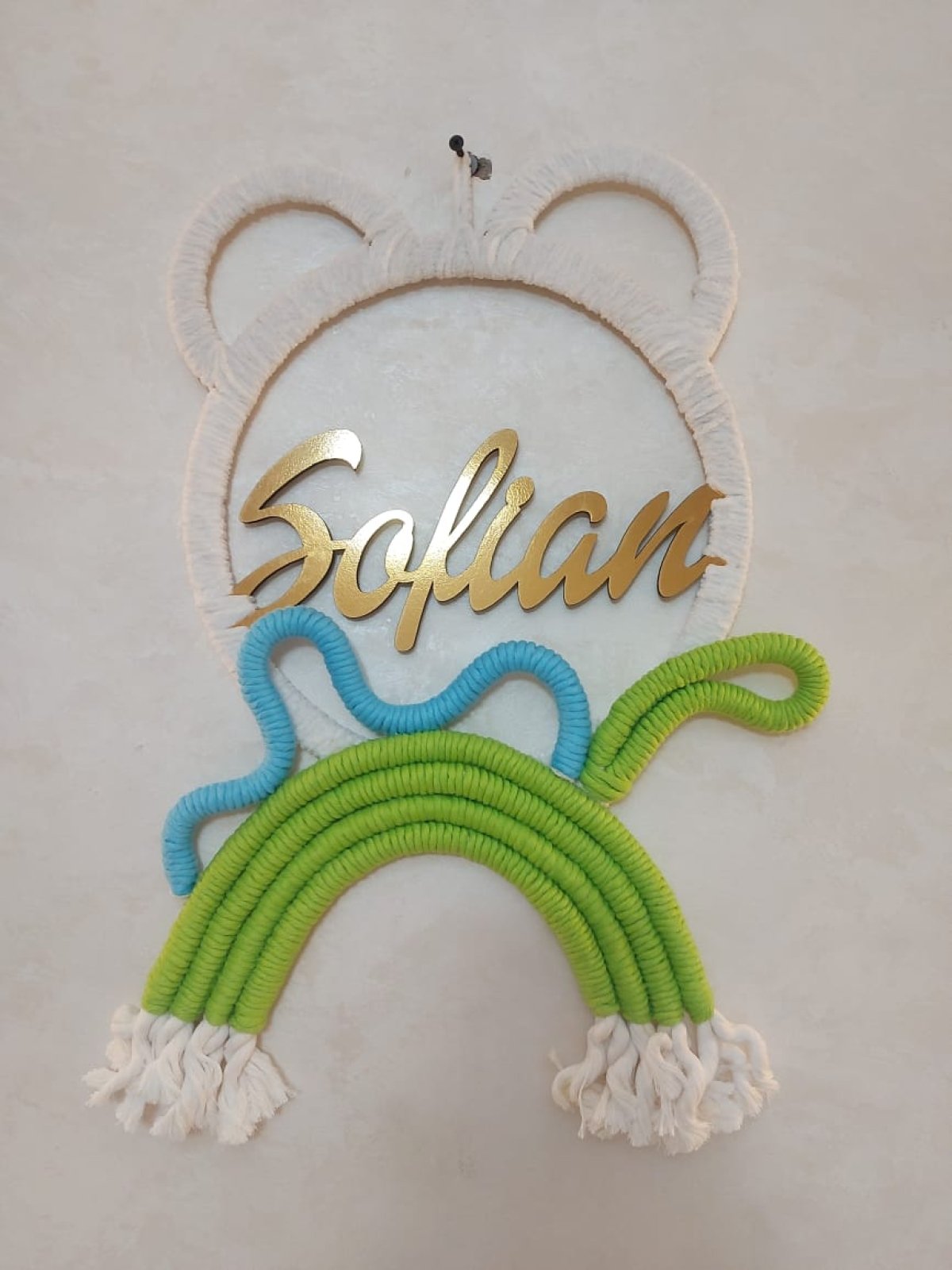 سحابه اطفال بالاسم بشكل الدبدوب الجميل والوان المكرمية التحفه لديكور احلي لغرفه الاطفال