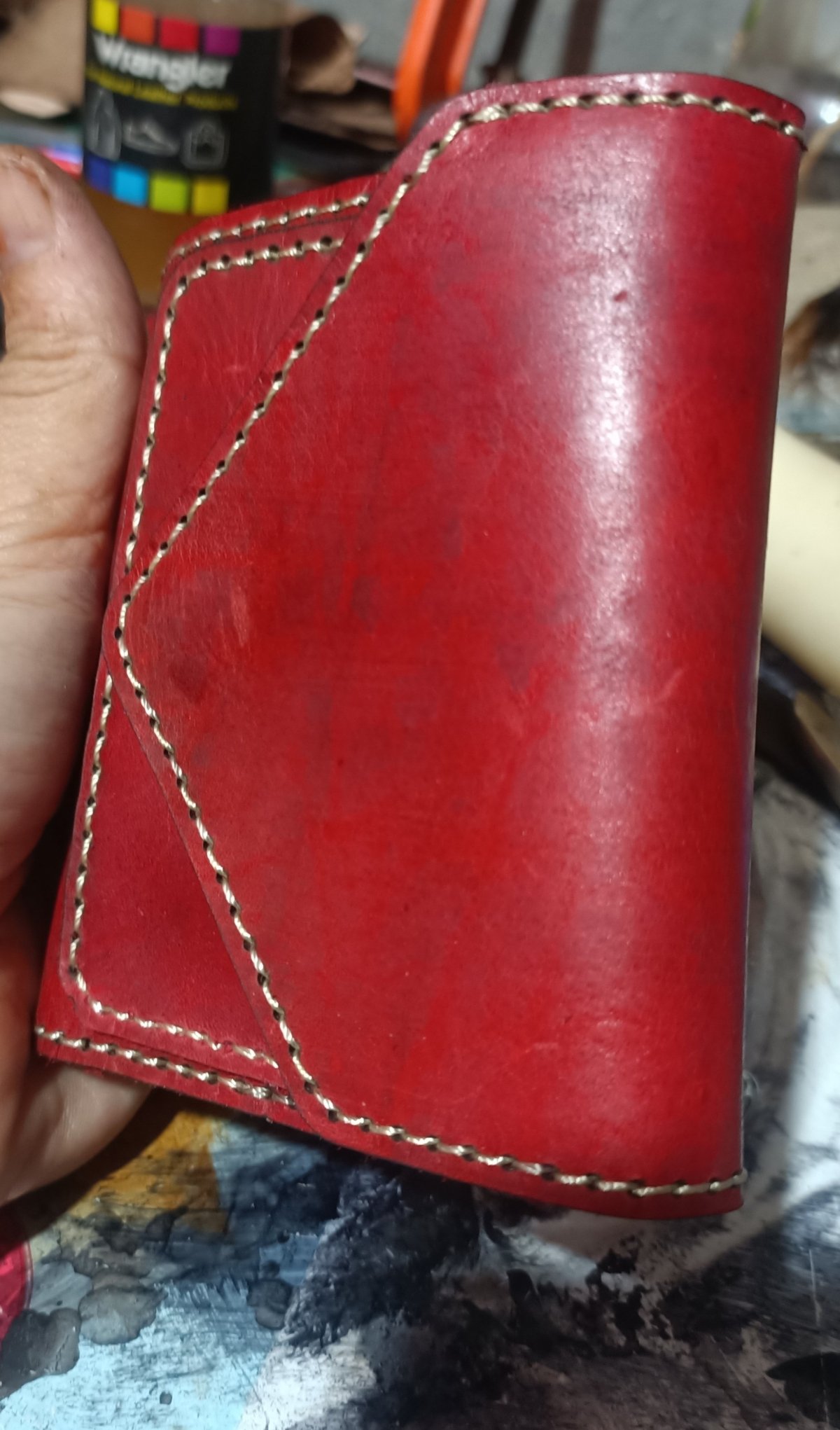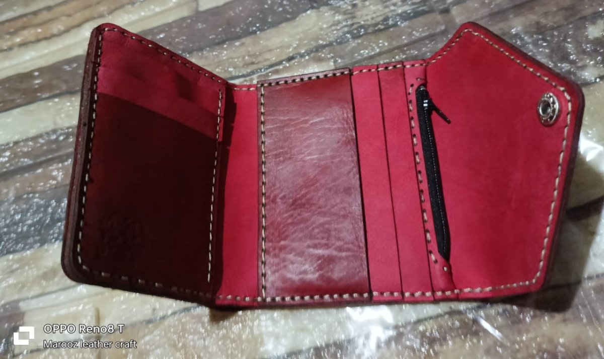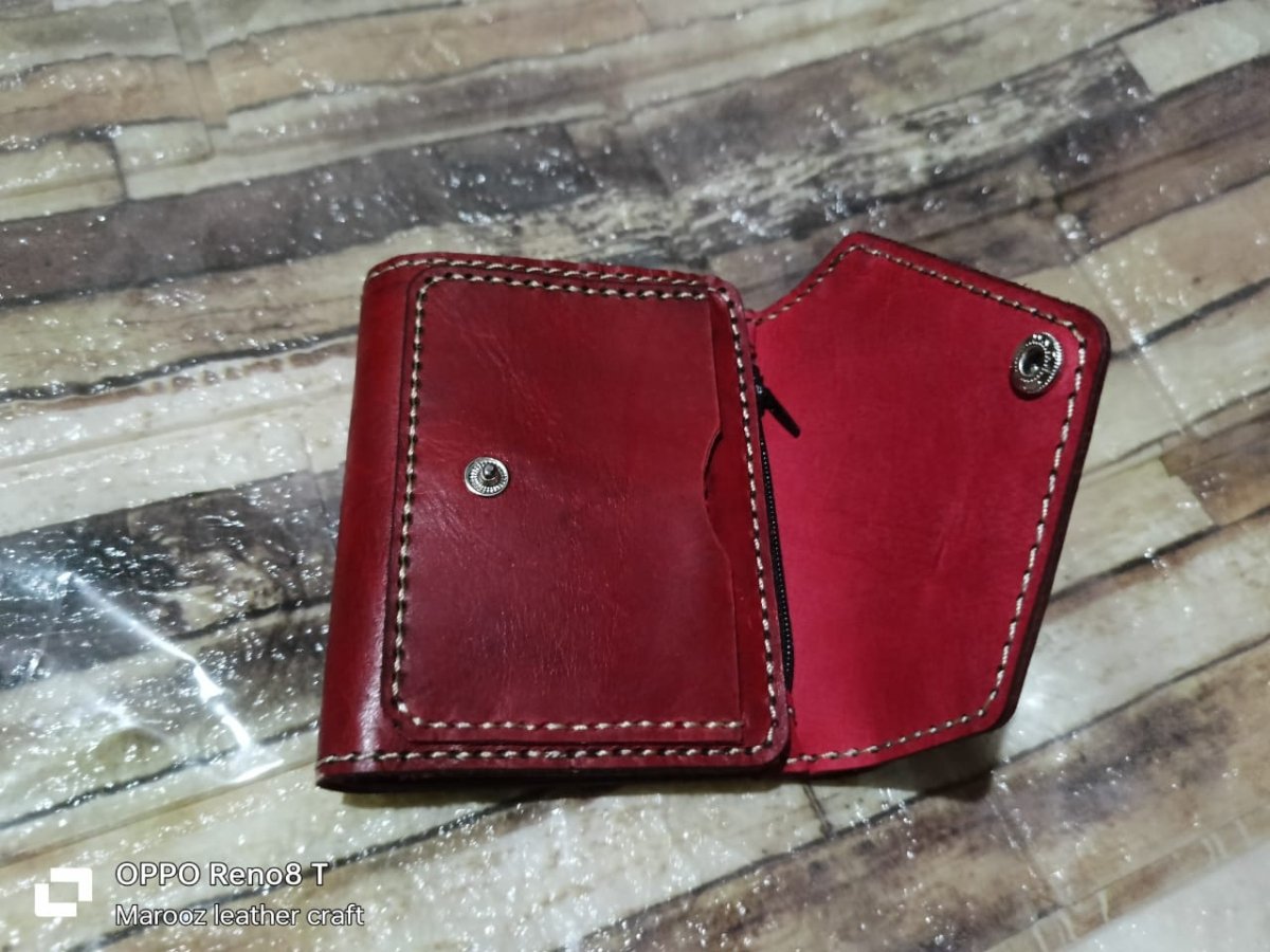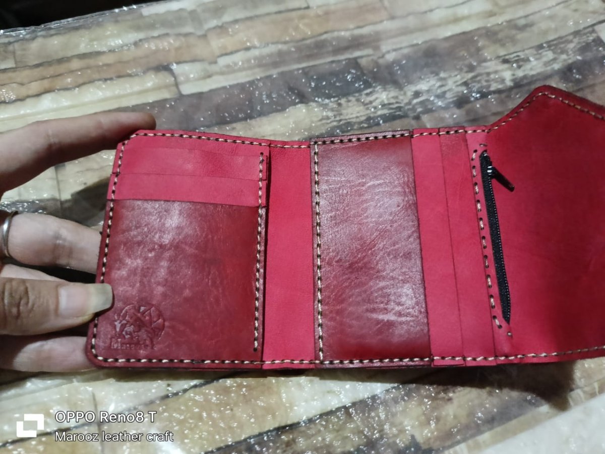محفظه عمليه جلد بقري من برا ومن الداخل جلد ماعز بها جيب بالعرض للعملات الورقيه