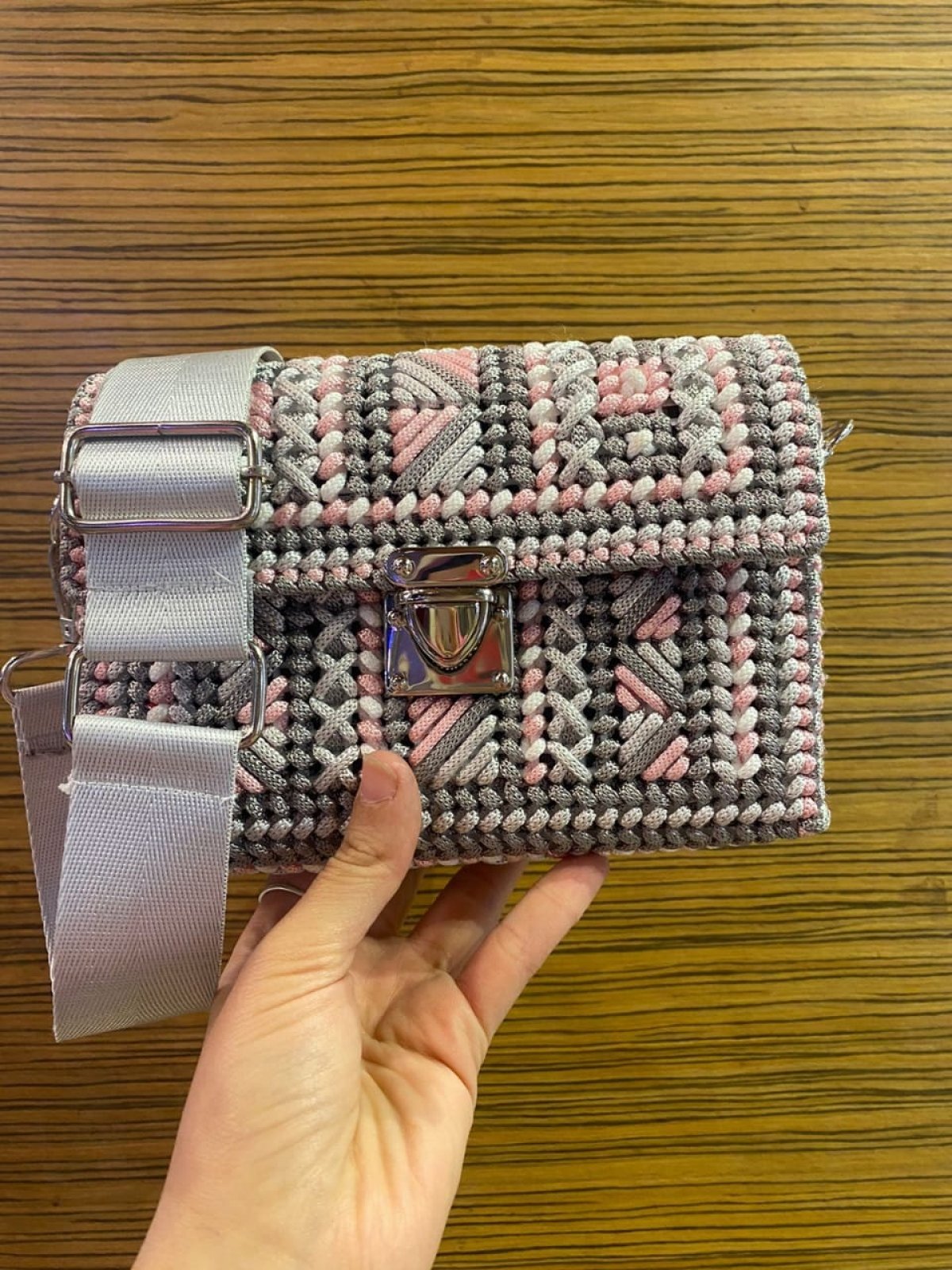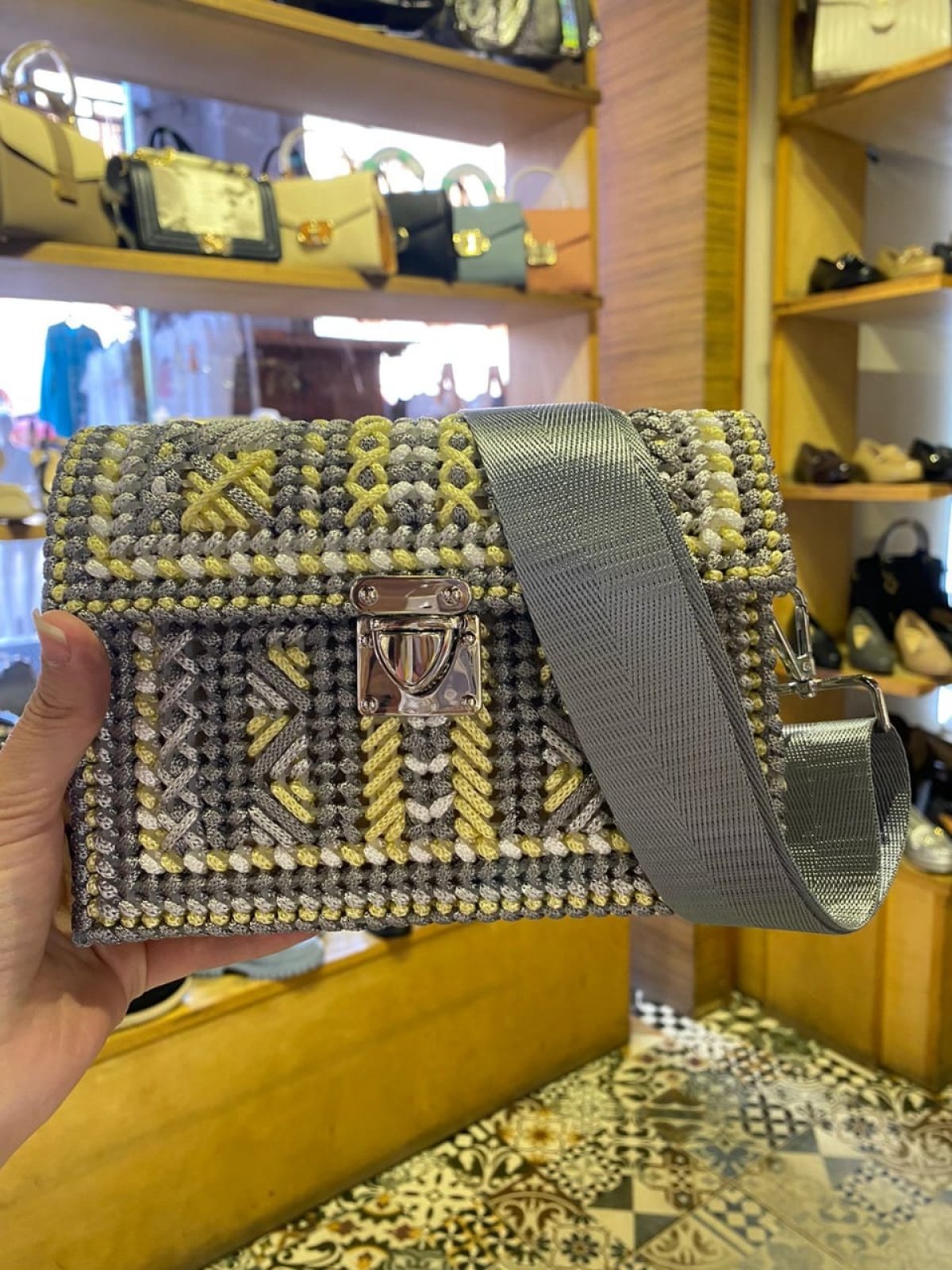 اليد : سلسلة او شريط من الستان الخاص بالشنط او من نفس الخيوط (حسب الطلب)