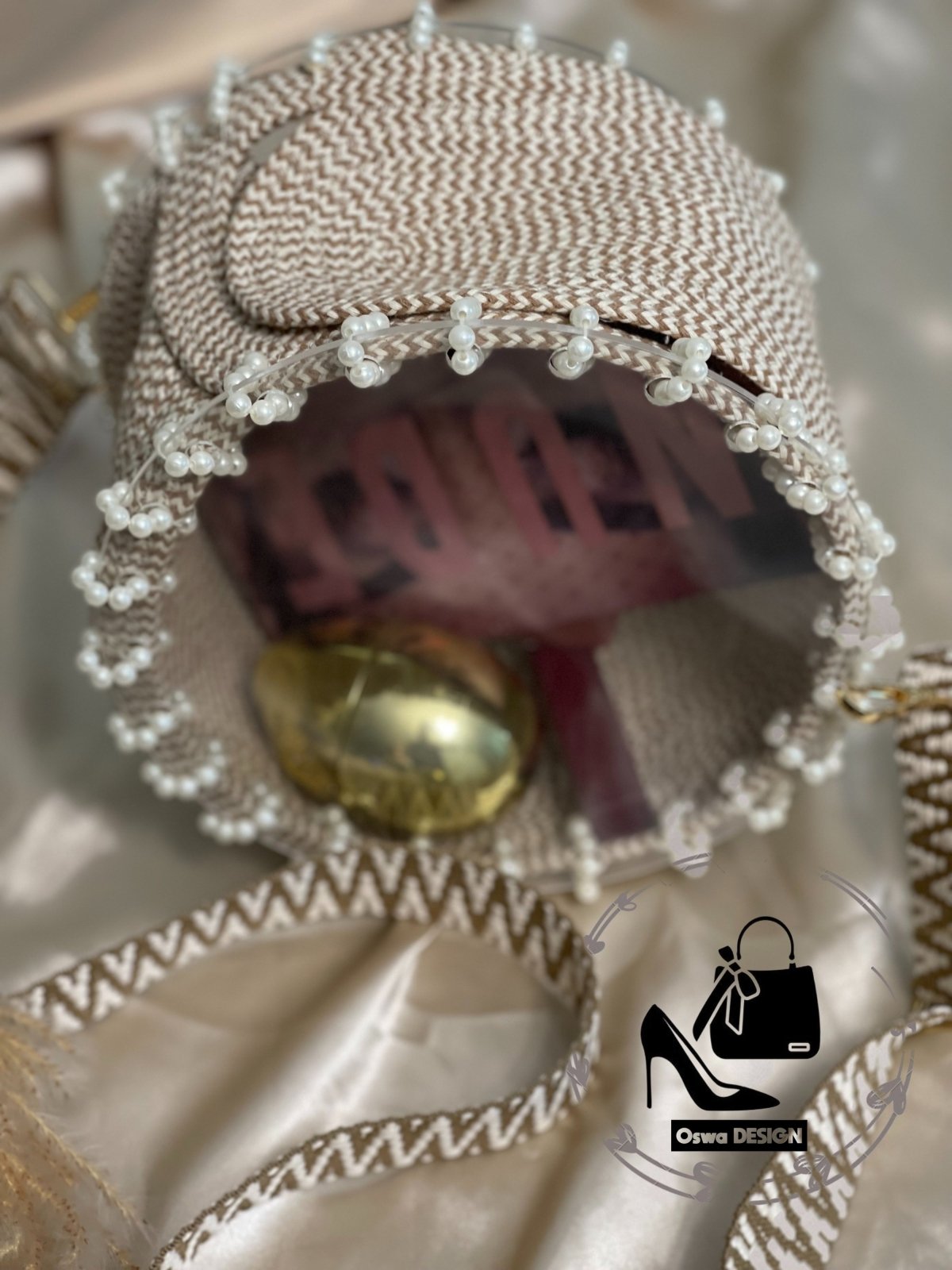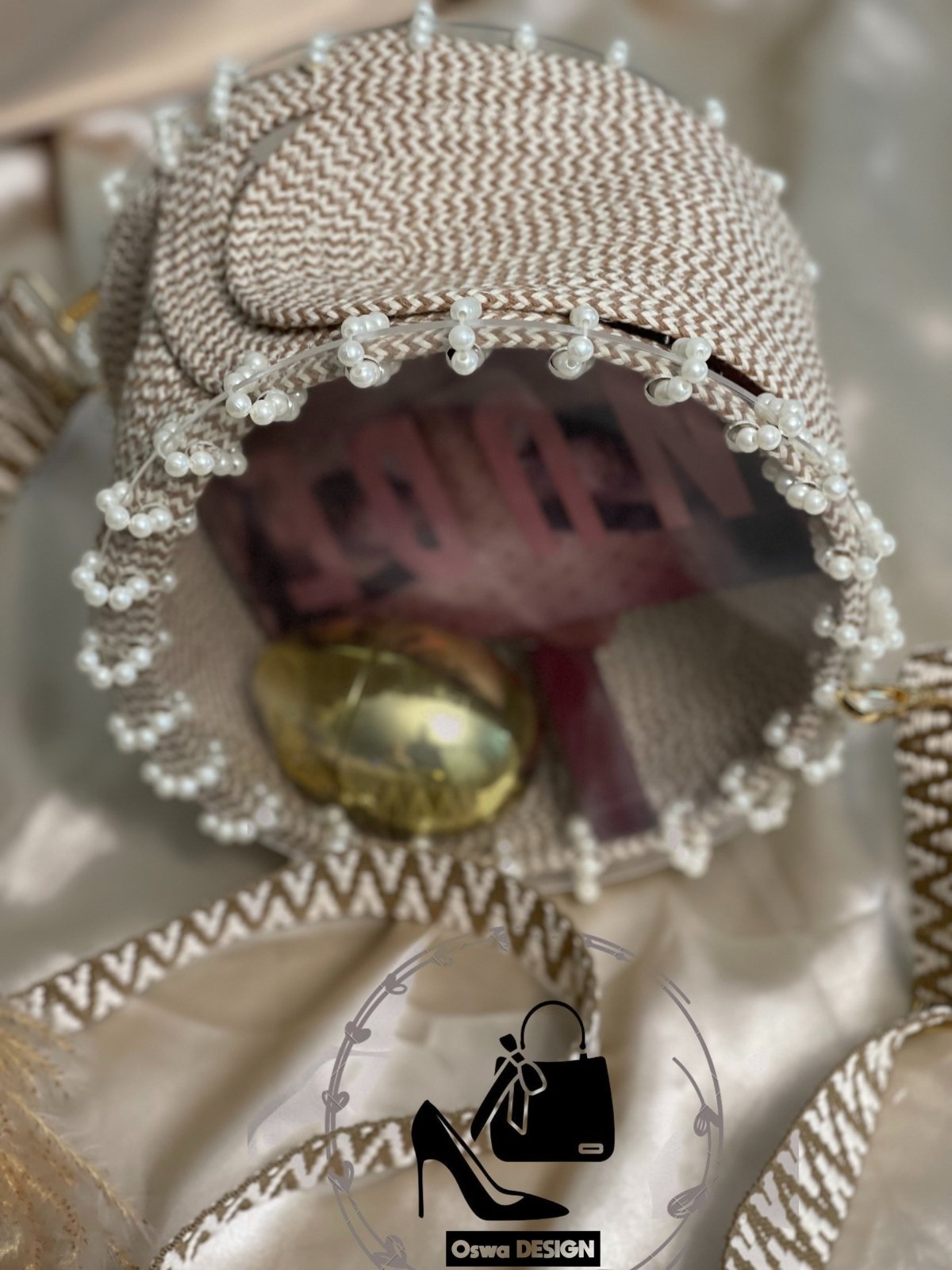 حقيبة أكريليك شفافة في كورد بيج في اوف وايت ، مقاس 25*25*15