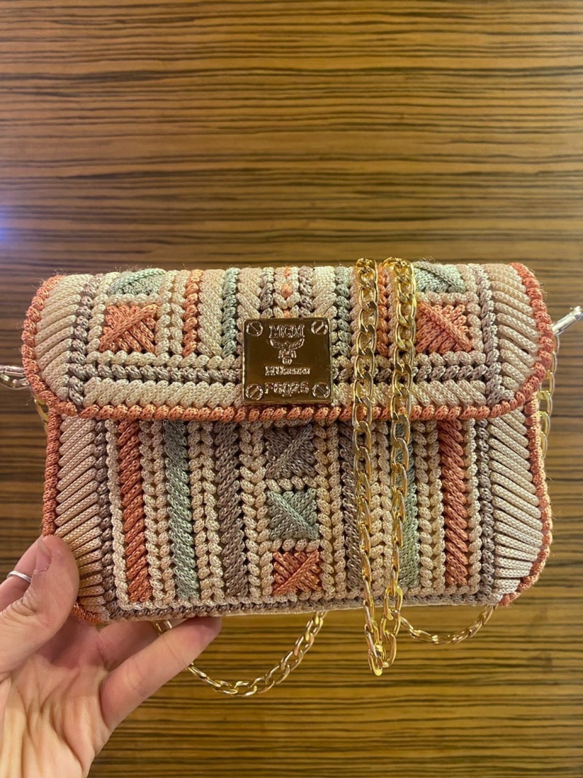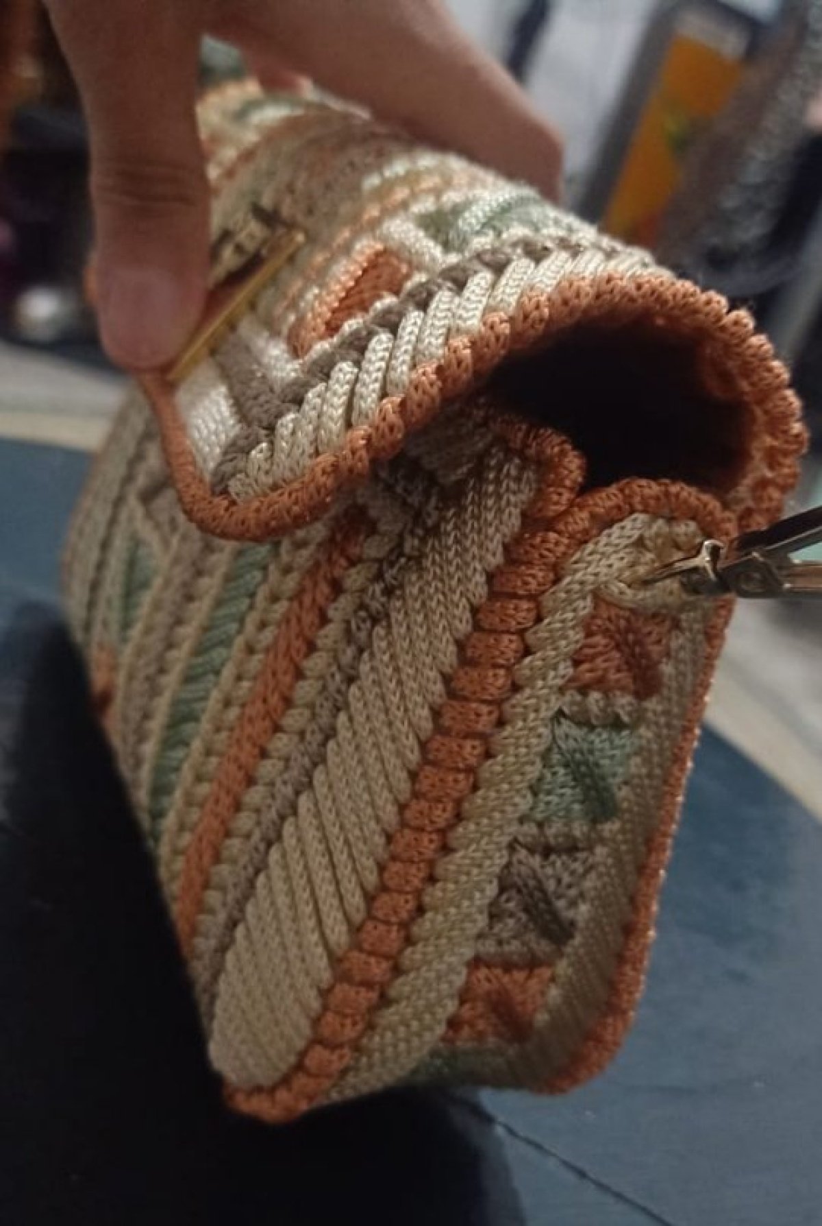 اليد : سلسلة او شريط من الستان الخاص بالشنط او من نفس الخيوط (حسب الطلب)
