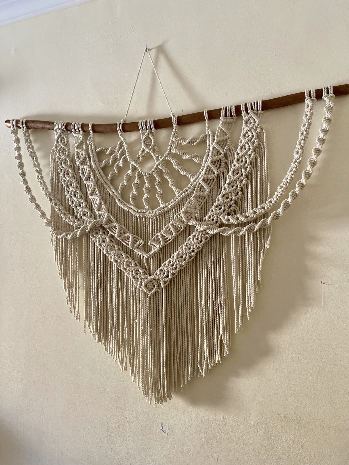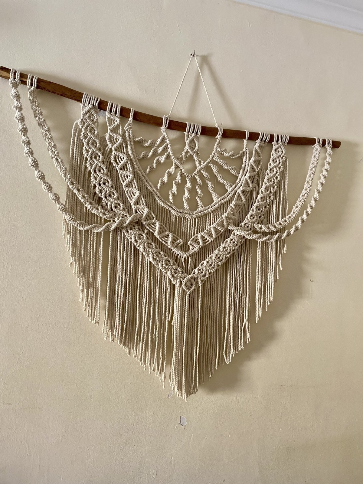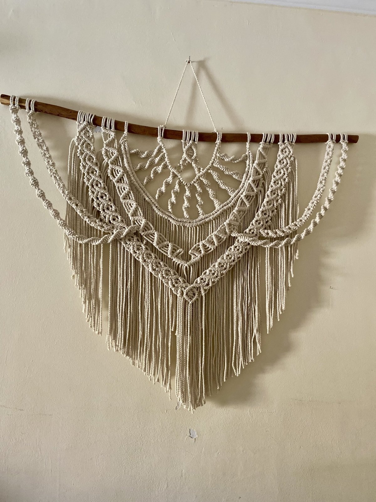 تعليقه حائط مكرميه كبيرة الحجم مقاس ١٢٠*٩٠ سم من خيط المكرميه القطن