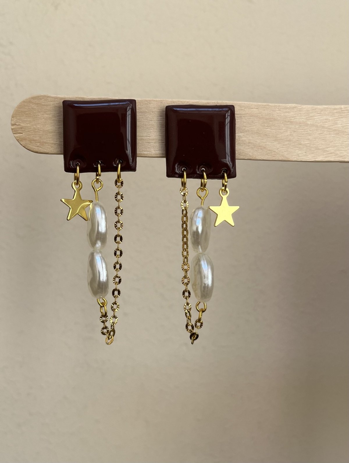 مصنوع يدوياً من الصلصال الحراري ، خفيف الوزن عالأذن مغطى بطبقة من الريزن تزيد من الحماية و تحافظ عالالوان واللمعان مع اجزاء معدن ستانلس ستيل مقاوم للصدأ و لا يسبب الحساسية