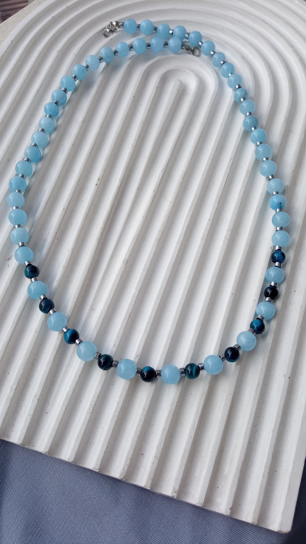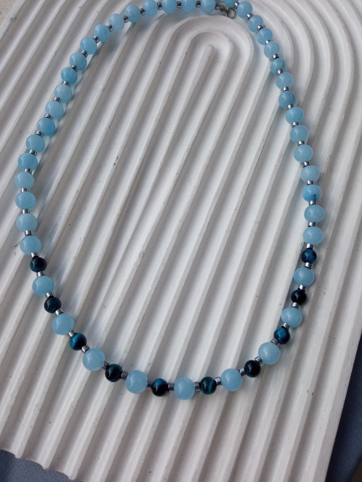 كوليه عقيق بيبي بلو مع حجر تايجر آي ازرق و فواصل هيماتيت
