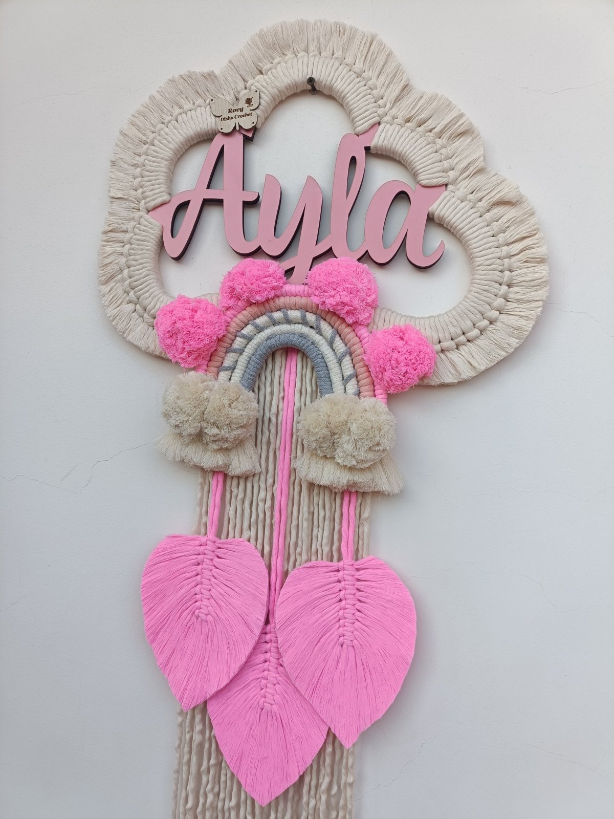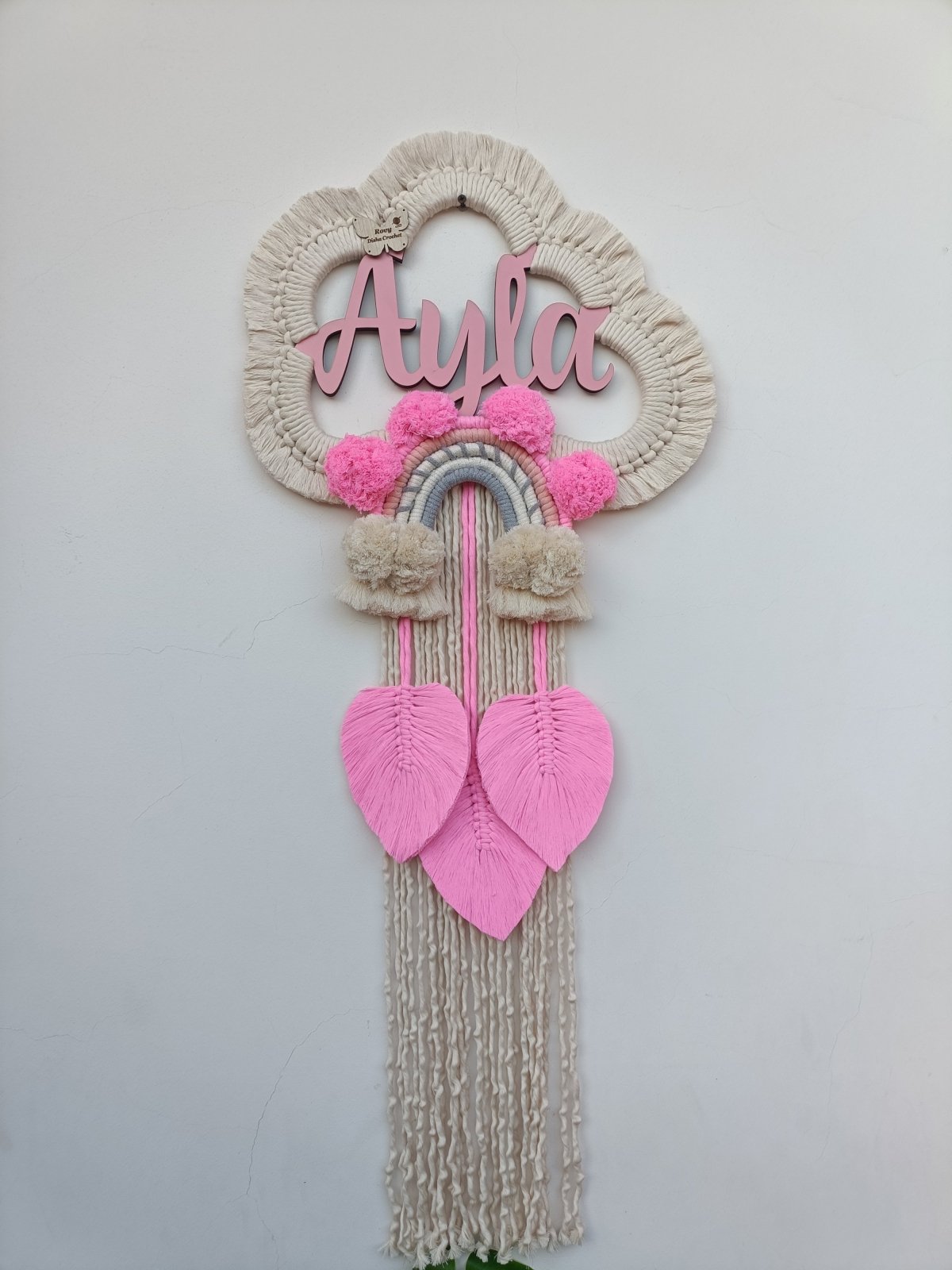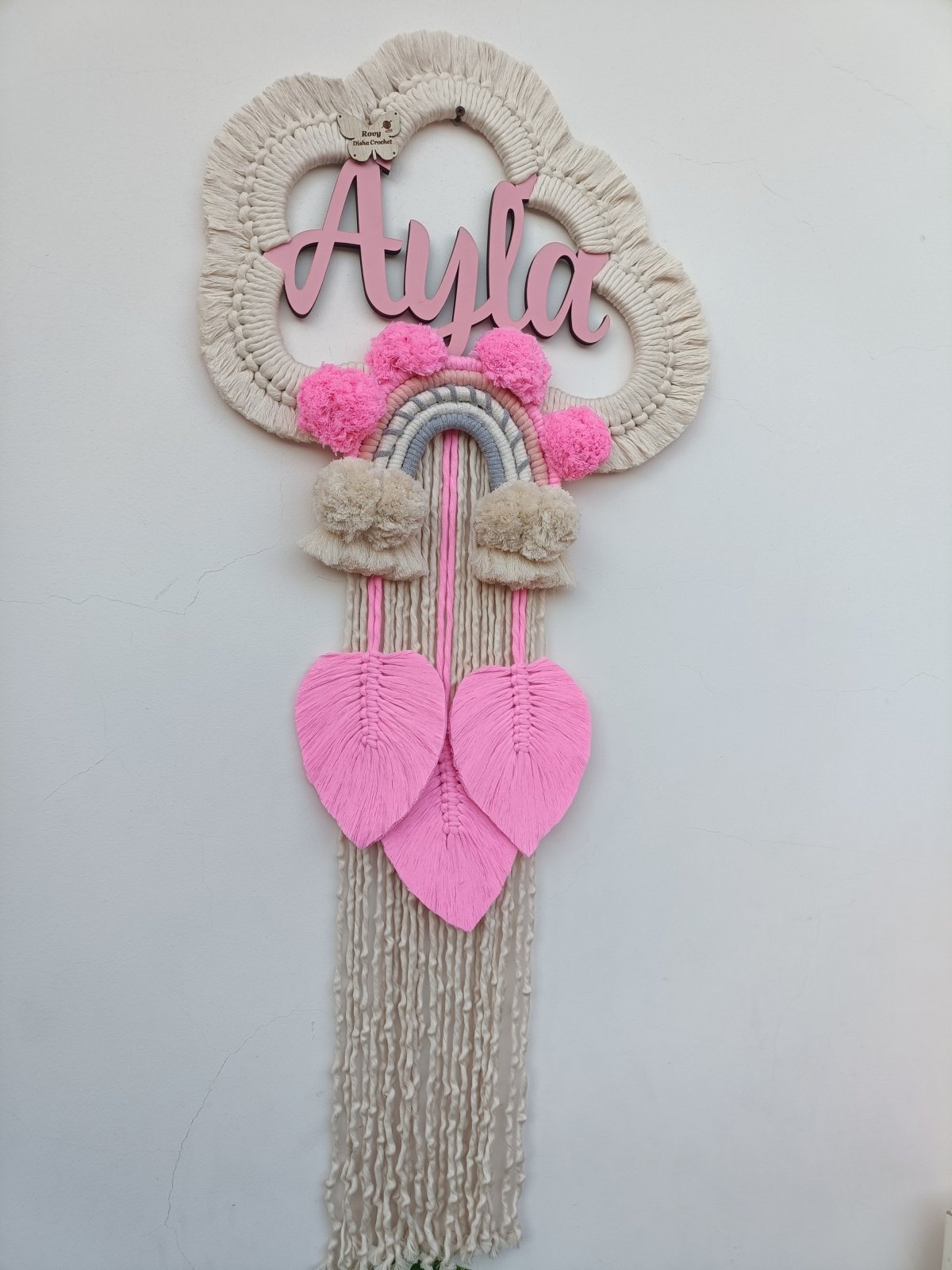 سحابه ديكور مكرمى باسم البيبي هي قطعه ديكور رائعه في لغرفة نوم طفلك ومنسبه جدا في السبوع واعياد الميلاد لانها تضيف لمسه من السحر للمكان تصنع بمجموعه من الالوان لتضيف روح البهجه يمكنك صنعها خصيصيا ب الاسماء والالوان والاشكال والاحجام المناسبه لغرفة طفلك . مقاس عرض 35 طول 110سم.