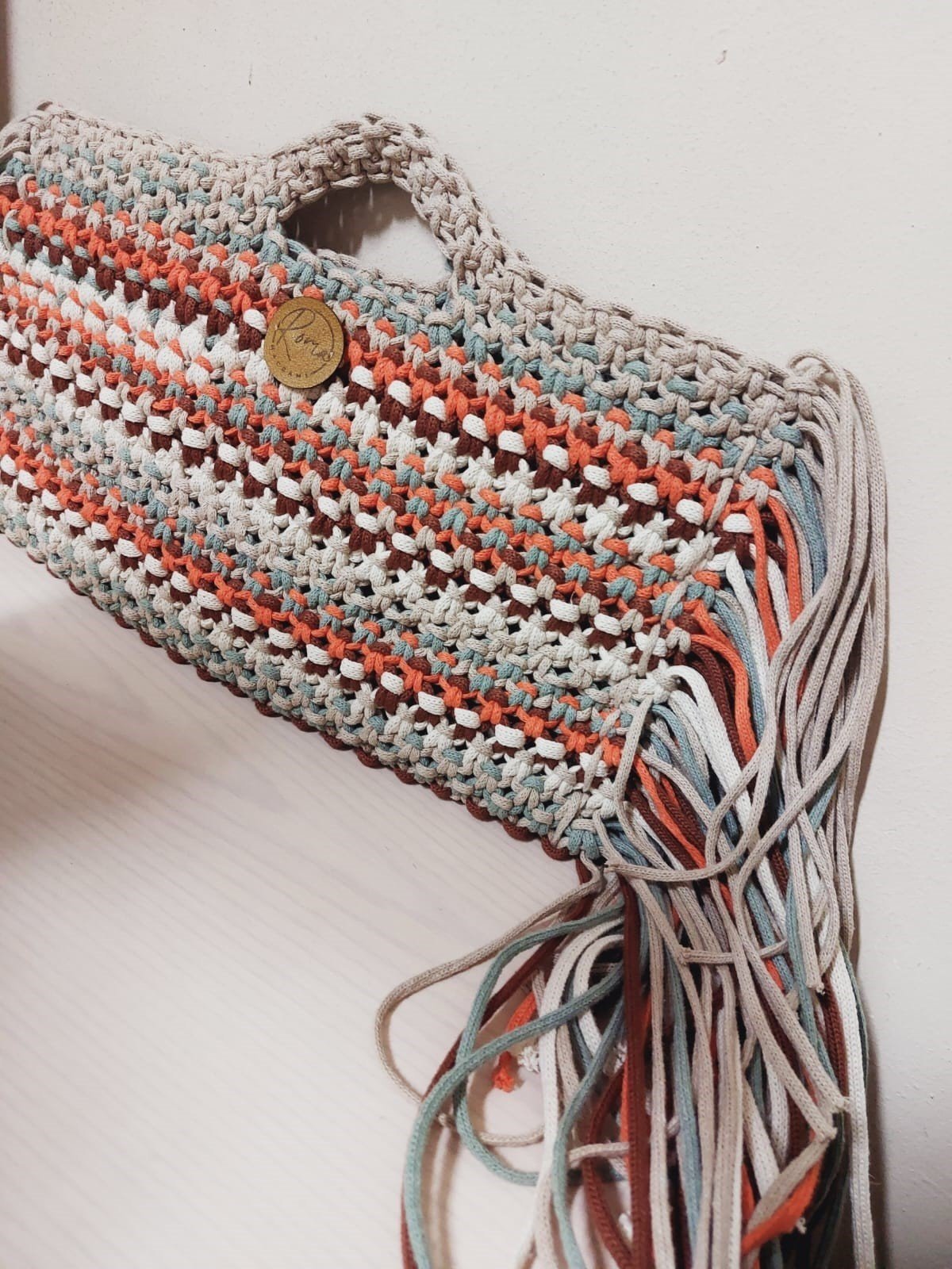 الوصف: احتضن روحك الحرة مع هذه الحقيبة المكرمية الرائعة بأسلوب بوهيمي! مصنوعة من ألياف ملونة نابضة بالحياة، هذه الحقيبة الكبيرة مثالية لإحداث تأثير قوي. يضيف التصميم المعقد للمكرمية عمقًا وملمسًا، مما يظهر الحرفية العالية. مع مساحة واسعة لجميع احتياجاتك، هي مثالية للرحلات اليومية، أو الخروجات على الشاطئ، أو المهرجانات. تجمع هذه الحقيبة بسهولة بين سحر البوهيمية والعملية، مما يجعلها قطعة لا غنى عنها لأي شخص يطمح لإضافة لمسة من الألوان والأسلوب إلى خزانته!