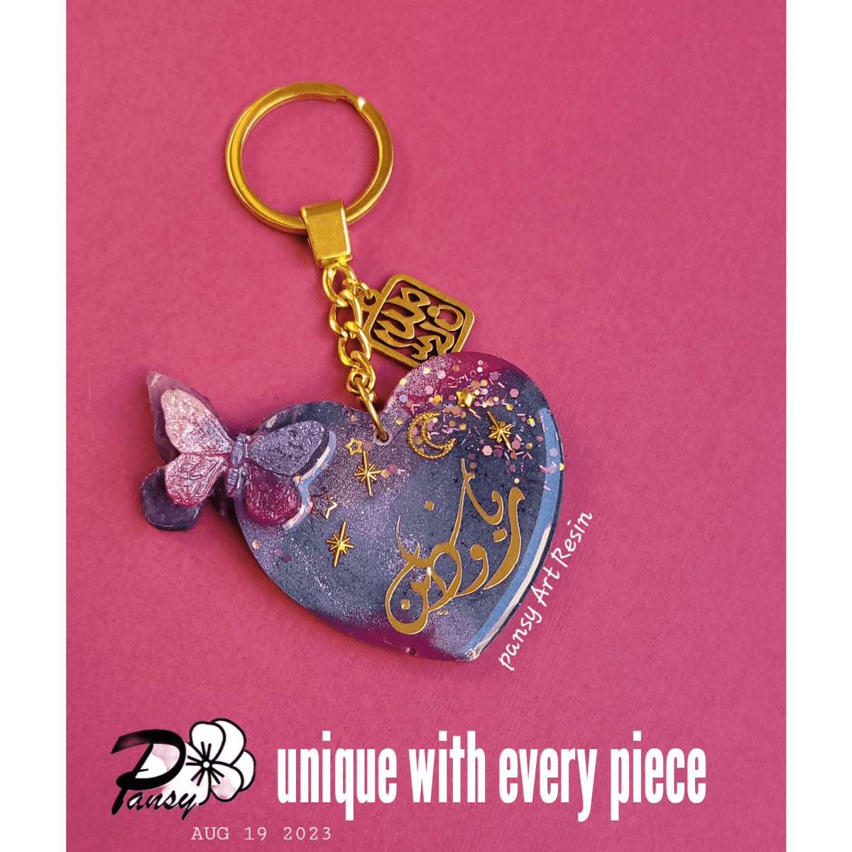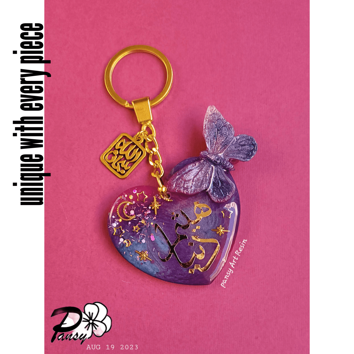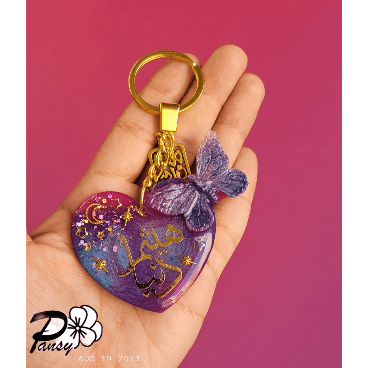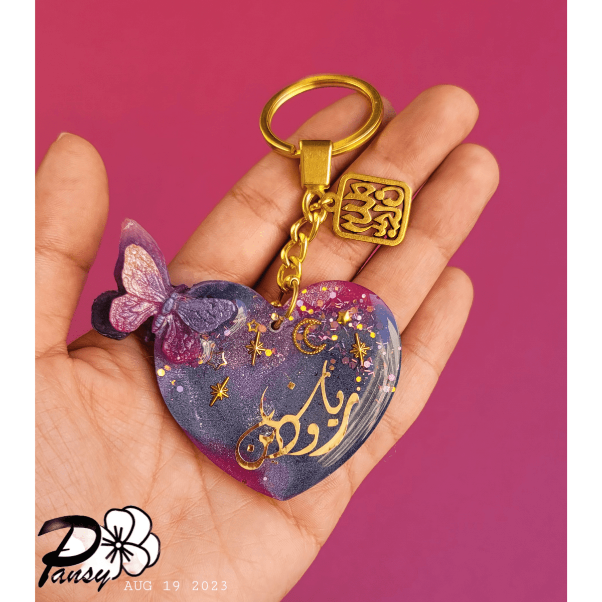 مدليه على شكل قلب مزود بفراشة مجسمة مع تصميم على الواجهين