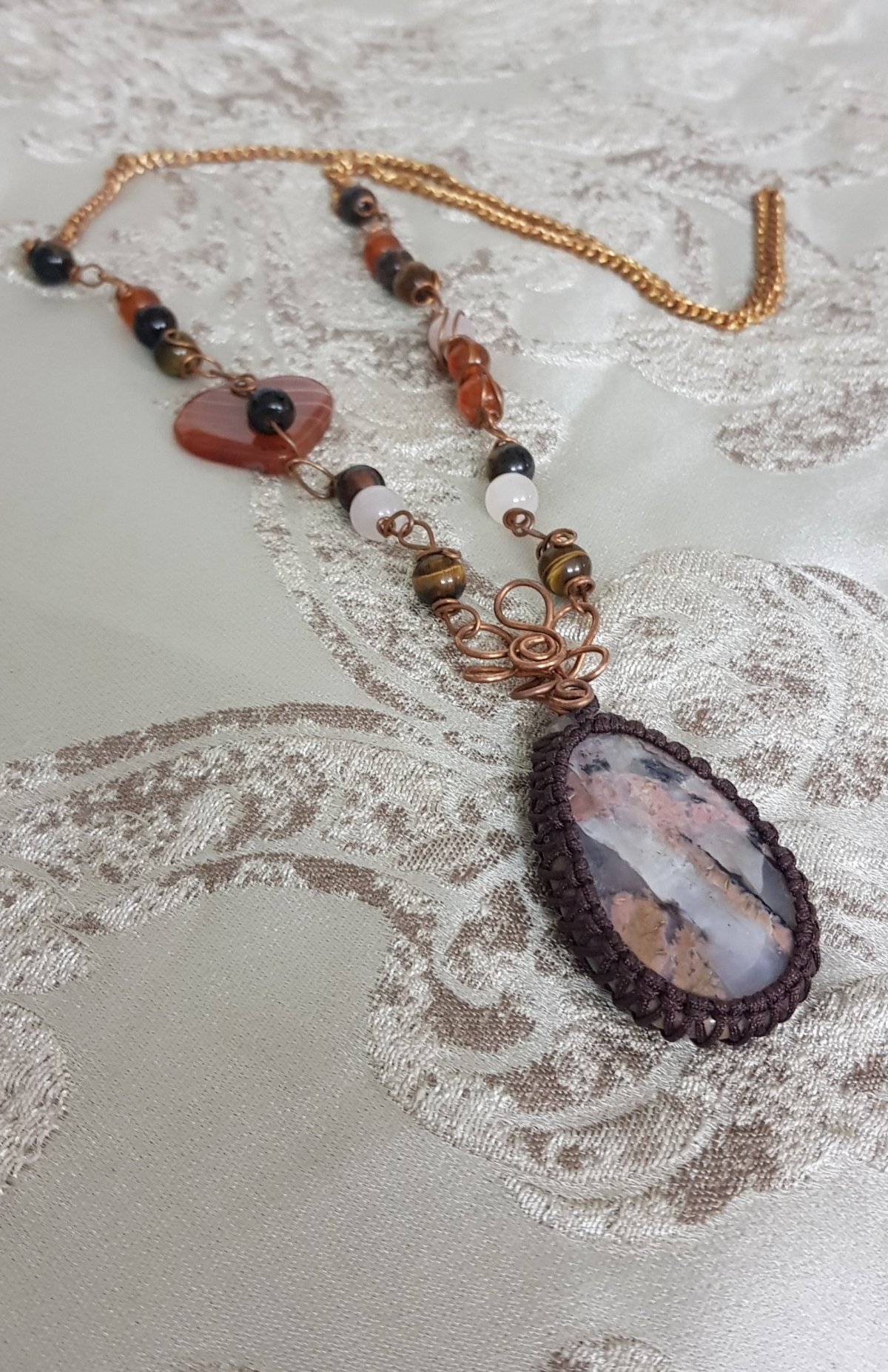 عقد هاندميد مميز بعليقة من الجاسبر مجدولة بالمكرمية مع النحاس الأحمر والأحجار الكريمة ❤❤