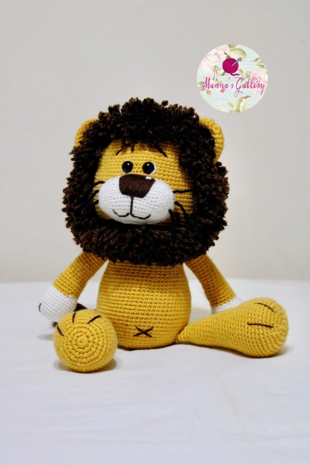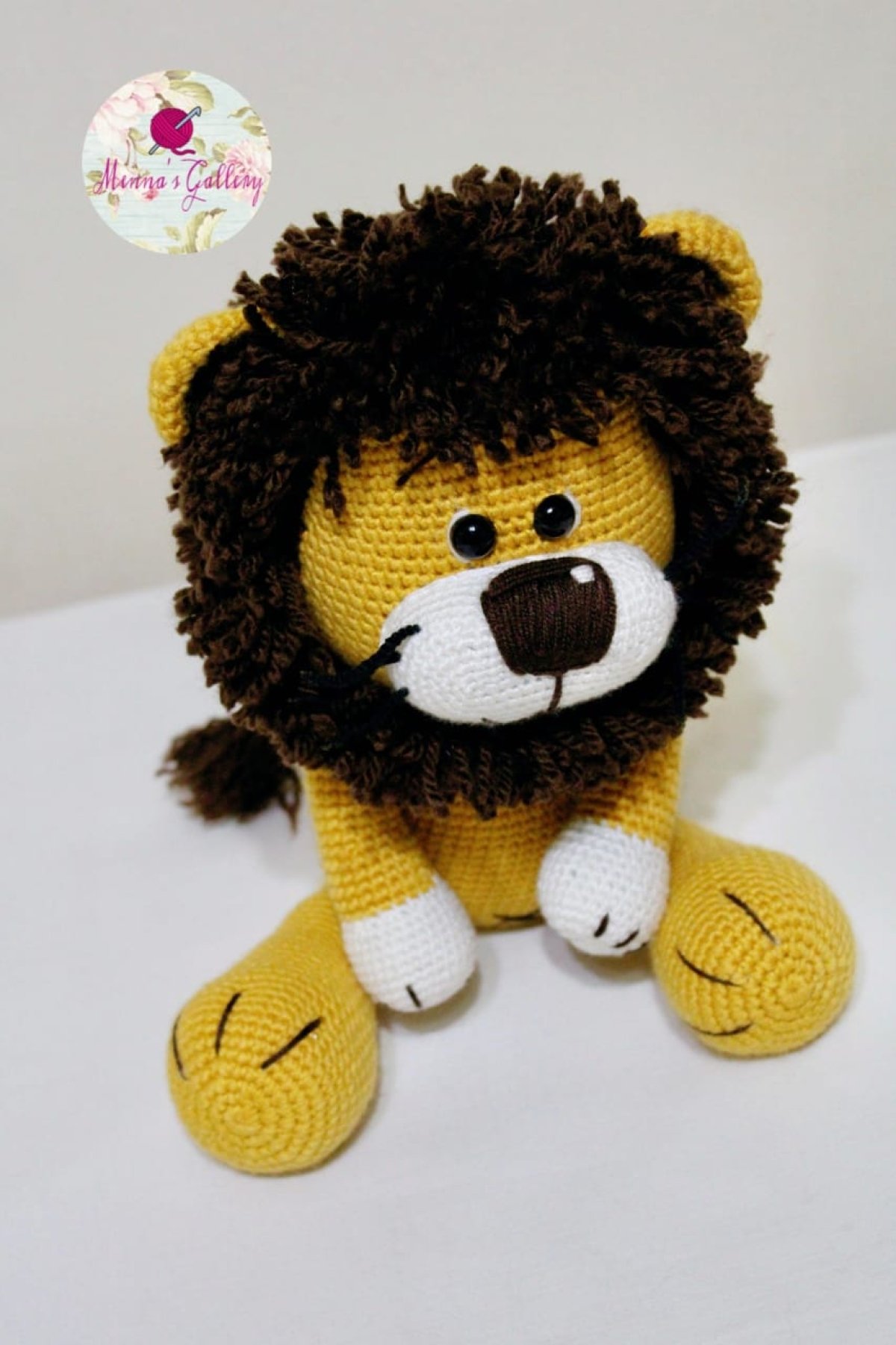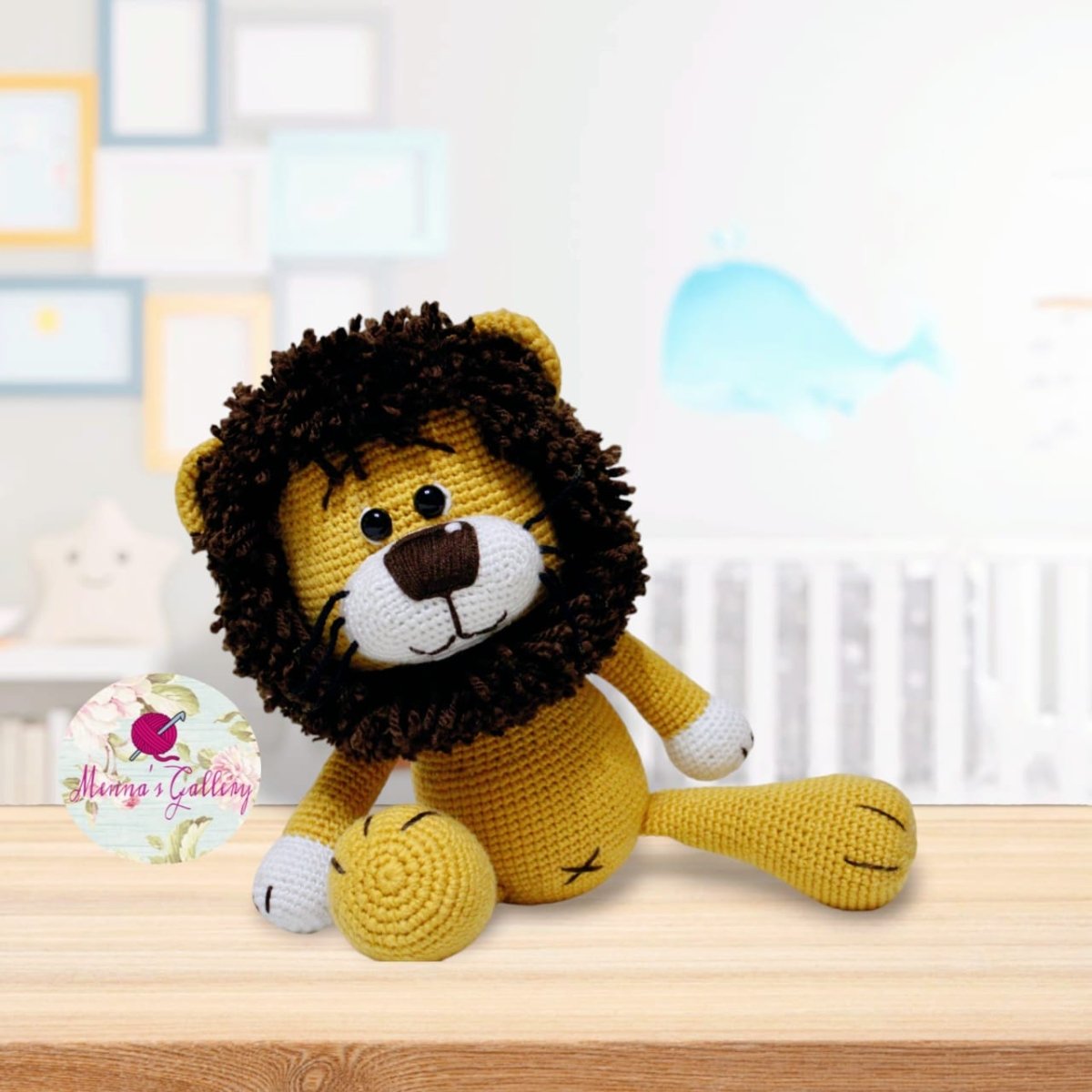 اسد كروشيه من الخيوط الصوف عالية الجوده بالوان الأصفر والبني طوله ٣٠ سم