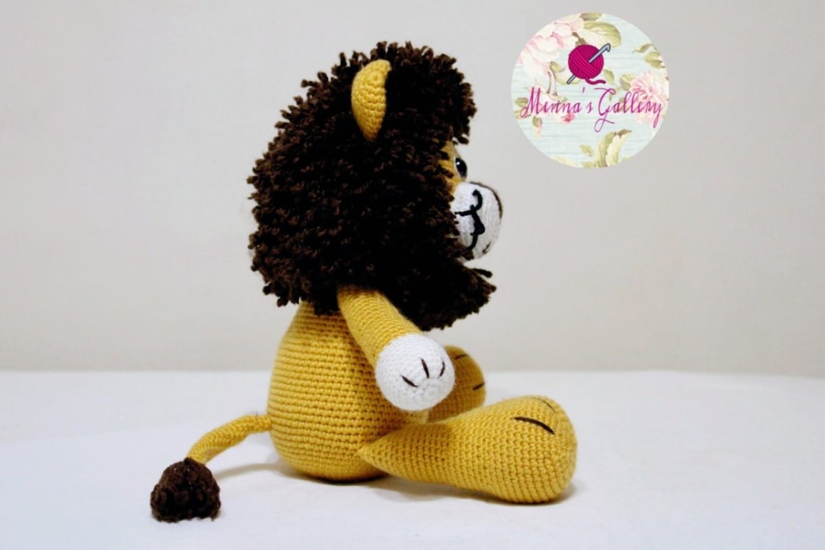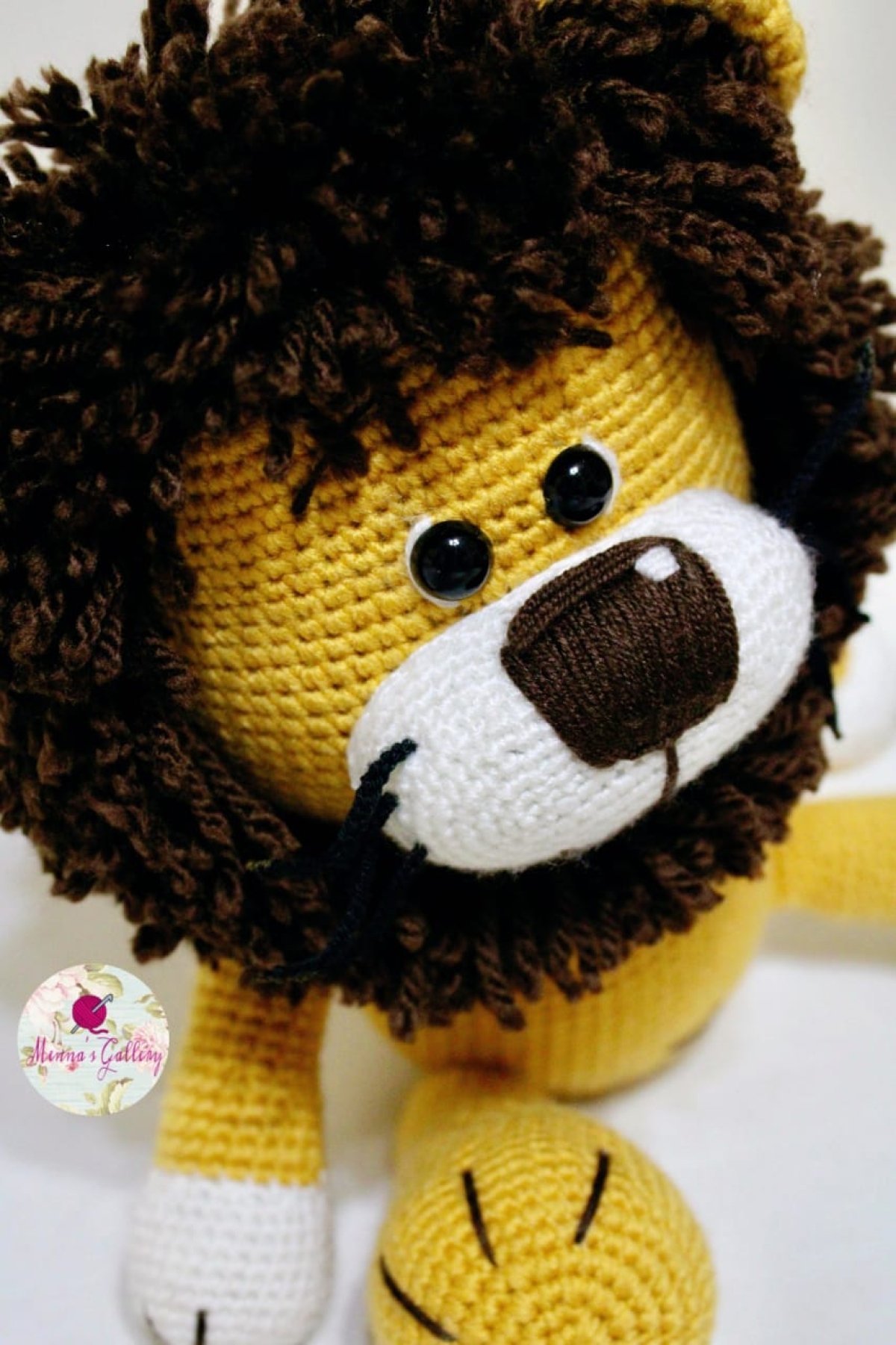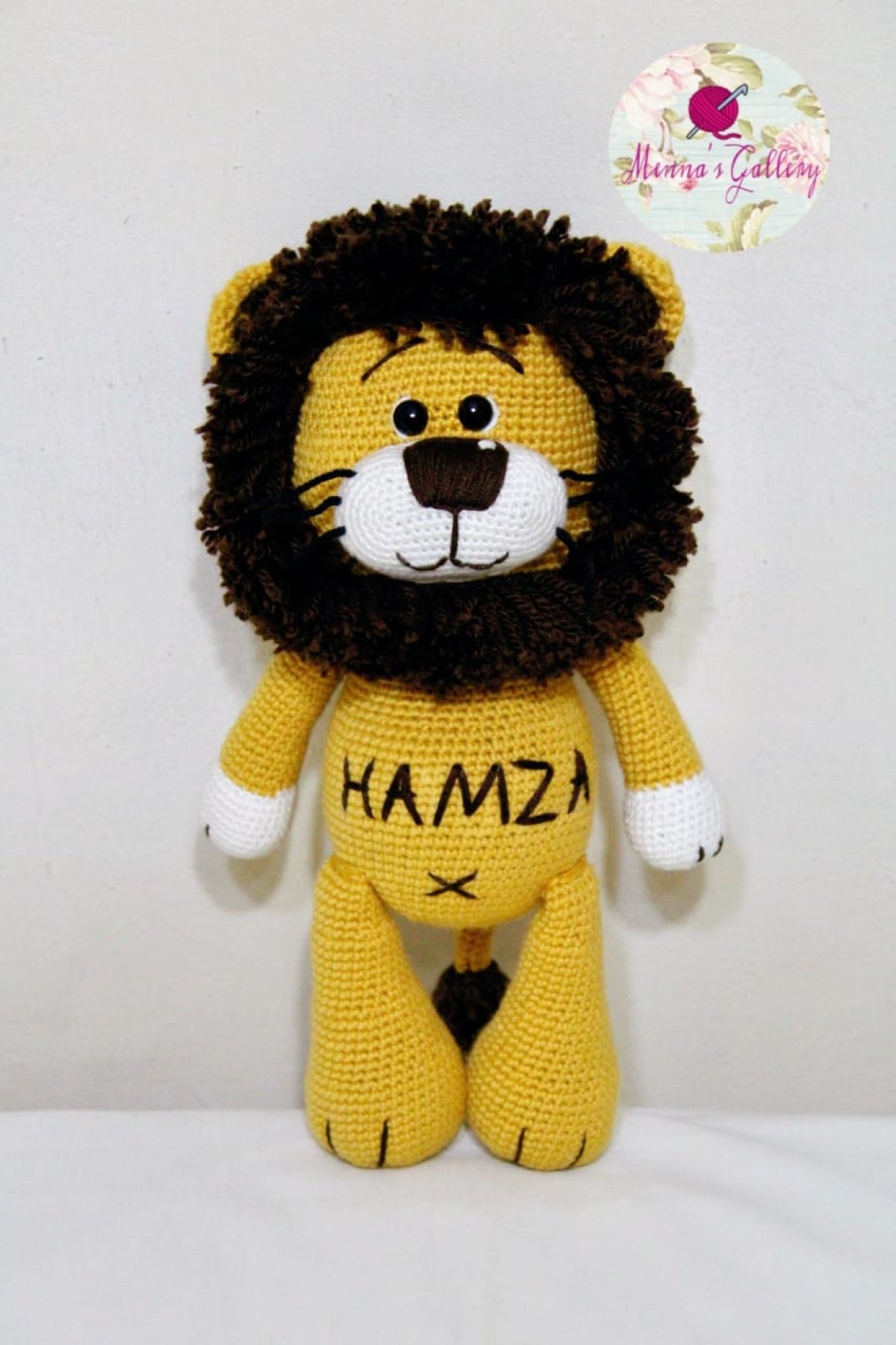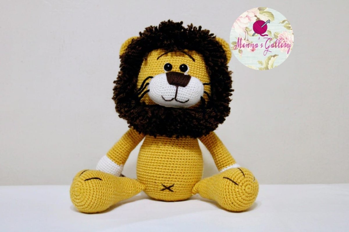 اسد كروشيه من الخيوط الصوف عالية الجوده بالوان الأصفر والبني طوله ٣٠ سم