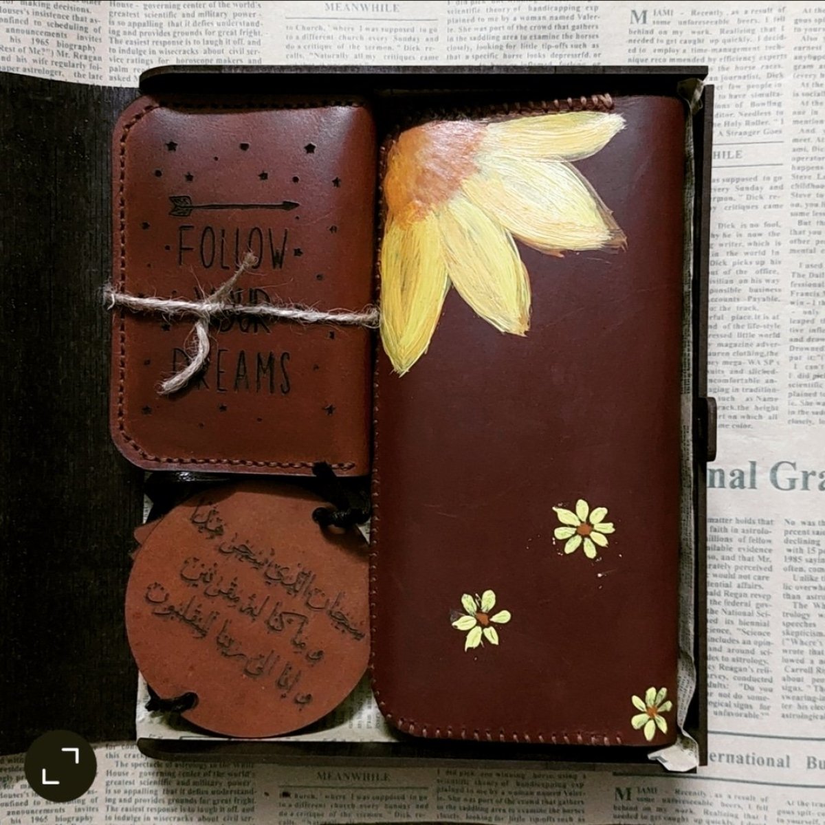 بوكس خشب يحتوى على محفظة نسائية جلد طبيعى هاند ميد