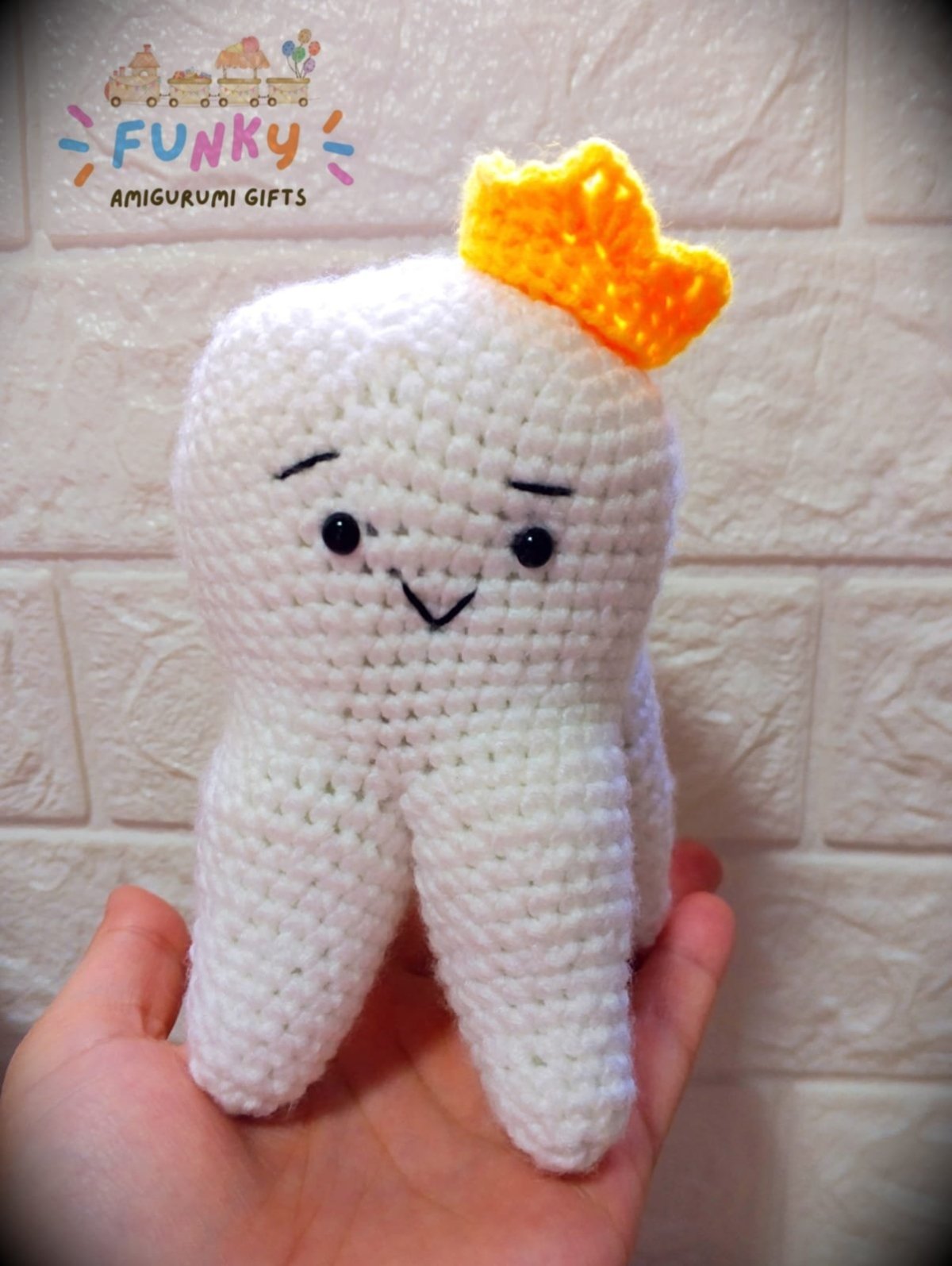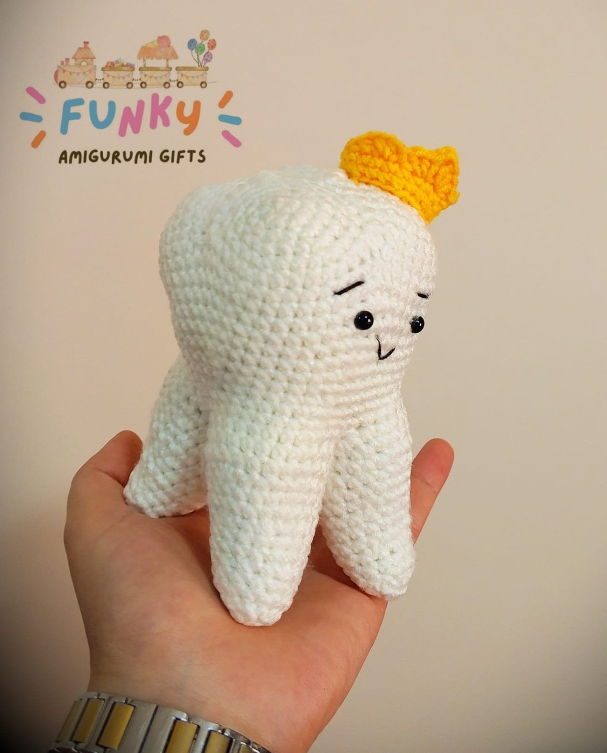 هديه على شكل ضرس طولها حوالى ١٧سم مصنوعة من خيوط ضد الوبره