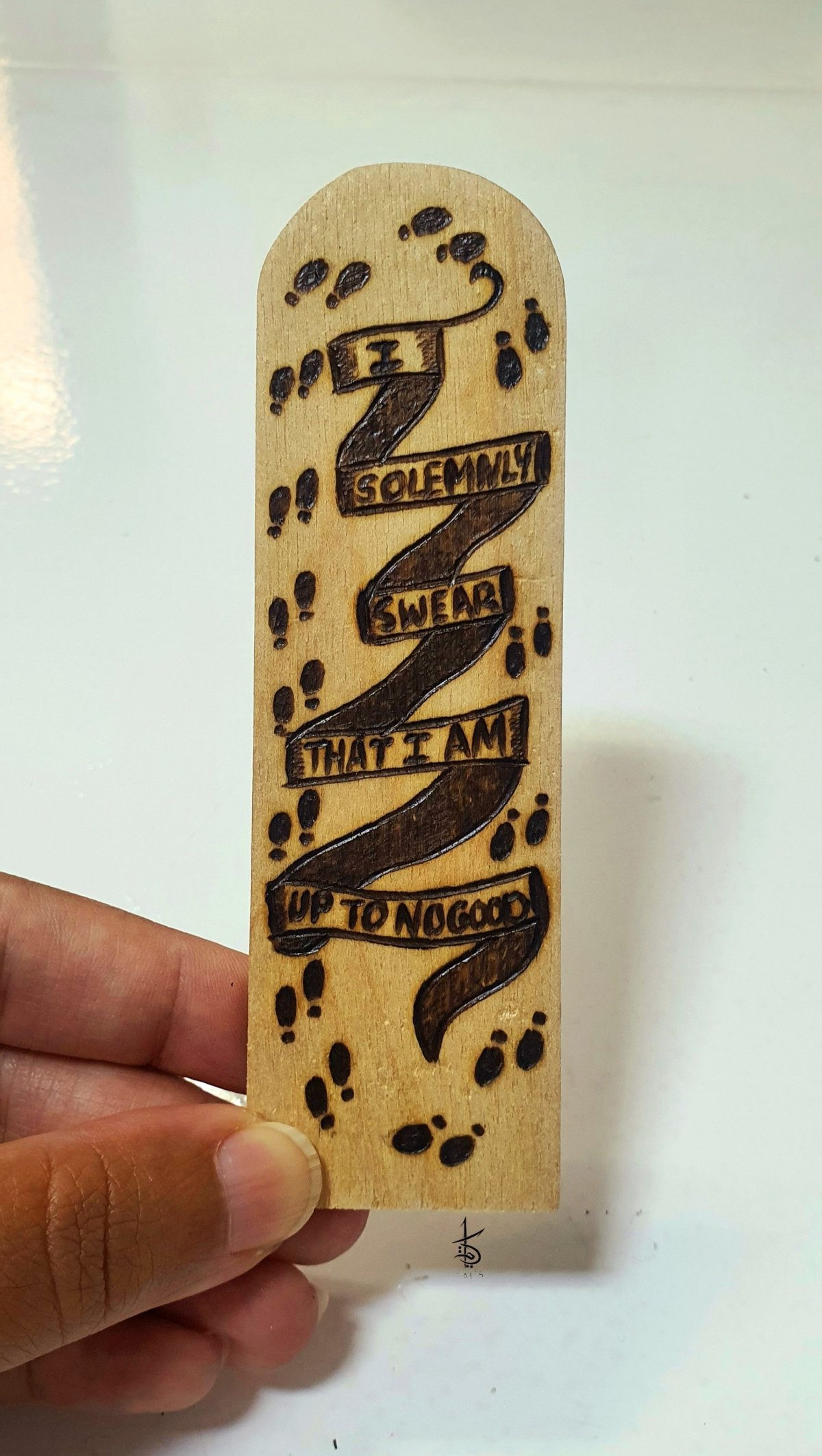 فاصل كتب خشب بتصميم فريد نفَّذناه بفن الحرق اليدوي على الخشب، لتجربة قراءة ممتعة!