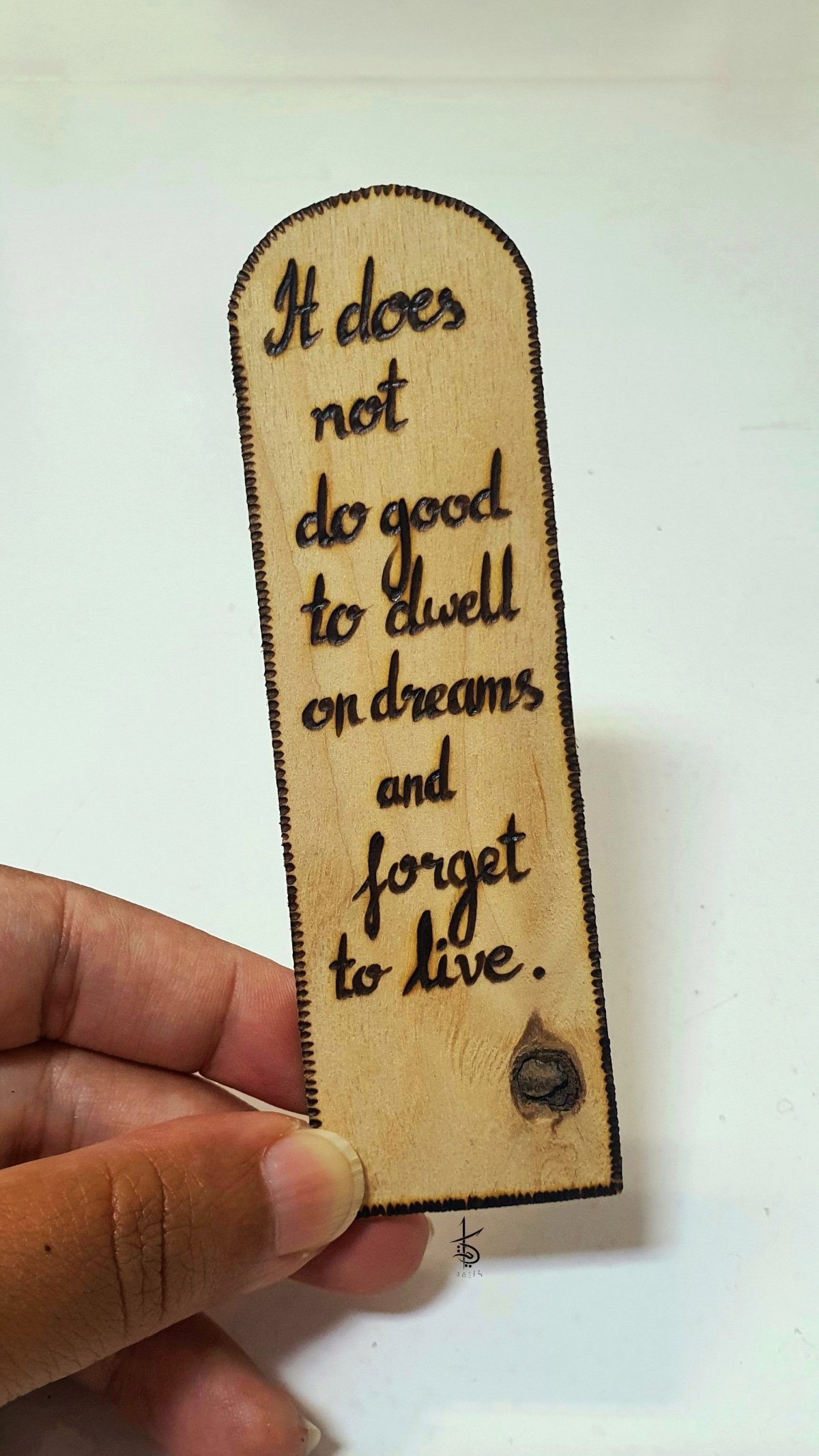 فاصل كتب خشب بتصميم فريد نفَّذناه بفن الحرق اليدوي على الخشب، لتجربة قراءة ممتعة!