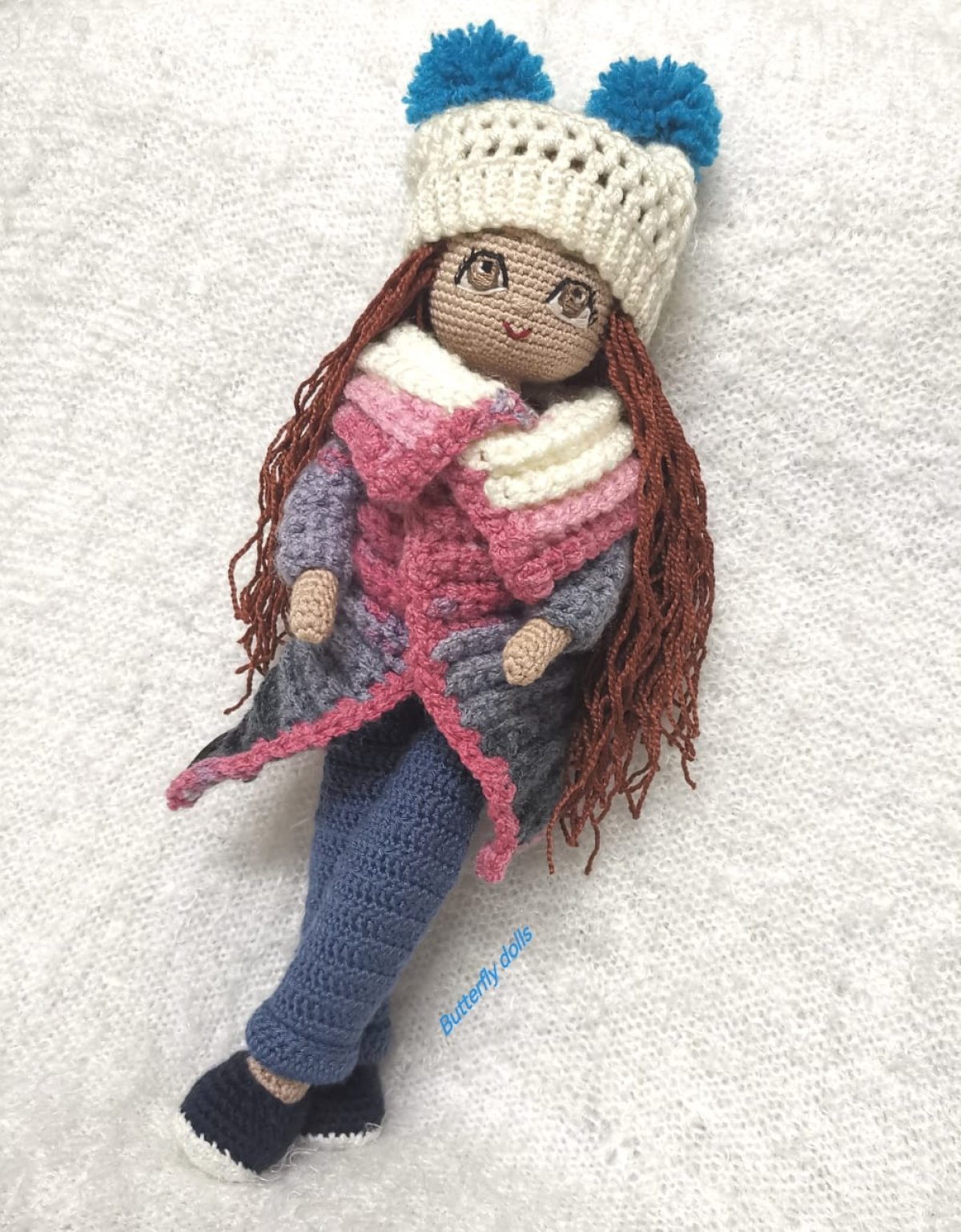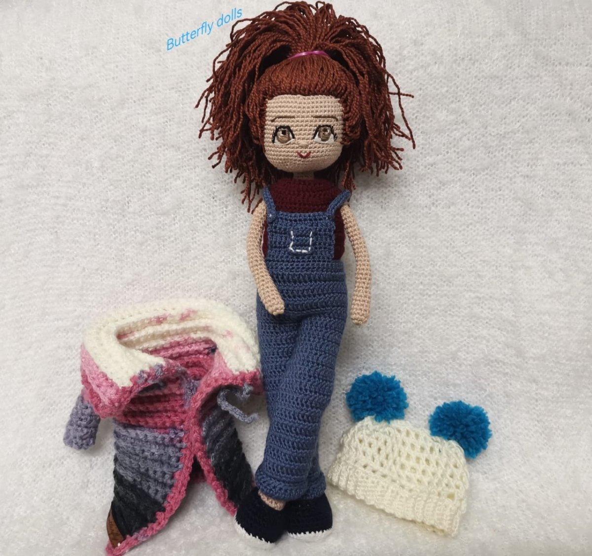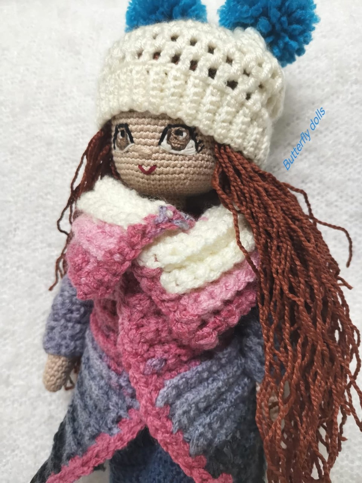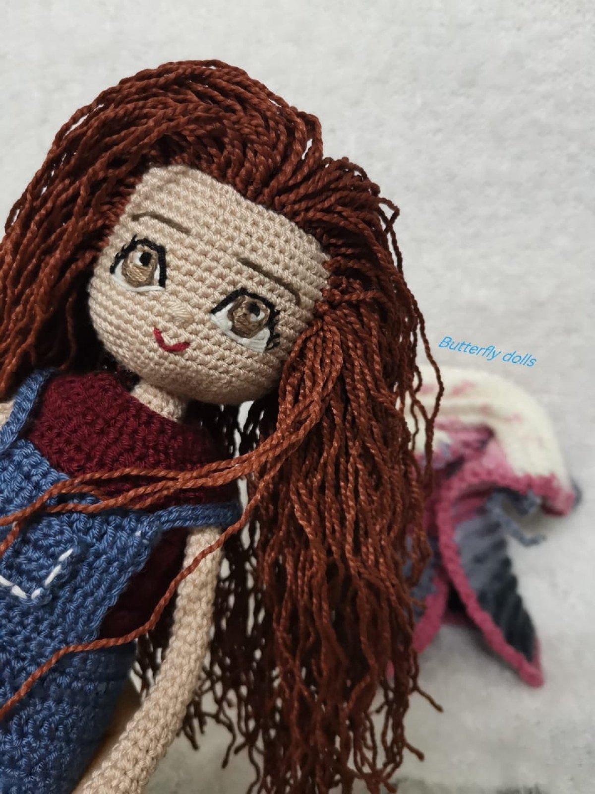 ملابسها منفصله عن الجسم ملامحها تطريز يدوى و الشعر تركيب خيط شعره بشعره