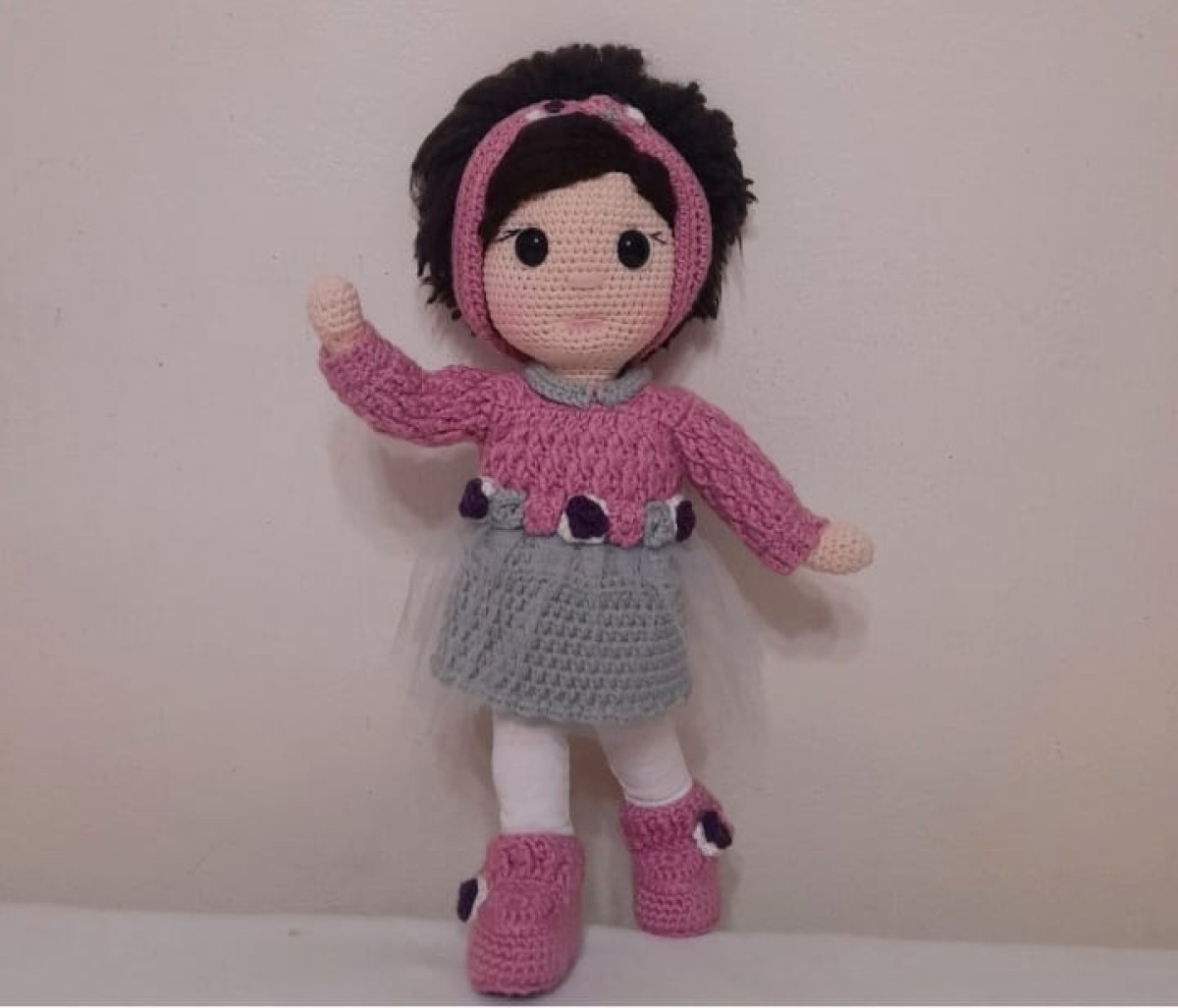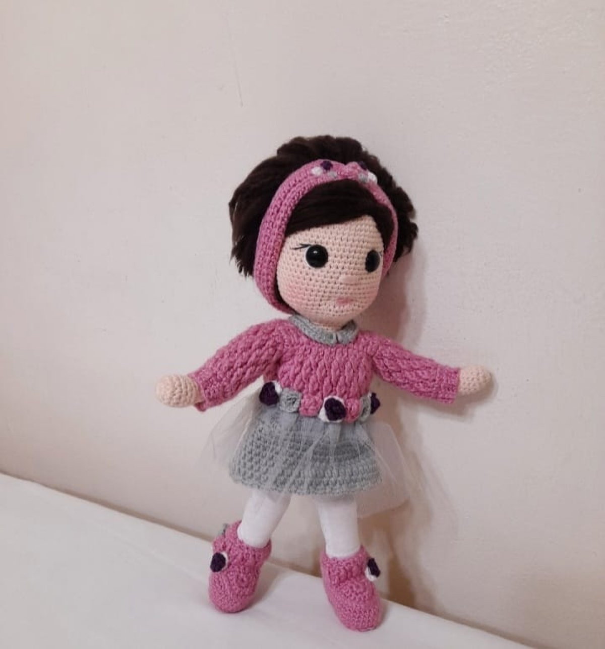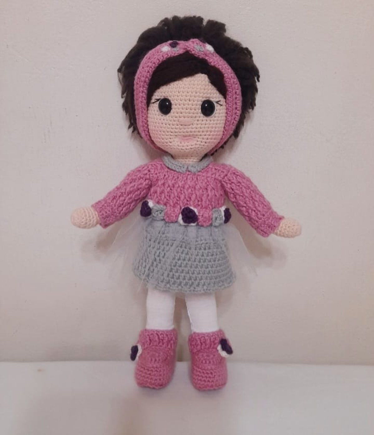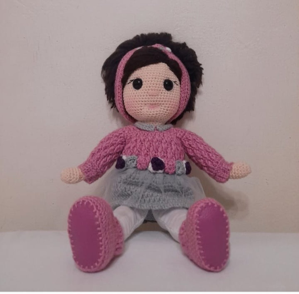 عروسه بخيط القطن والصوف عالية الجوده بملابس منفصله طولها ٣٠ سم .