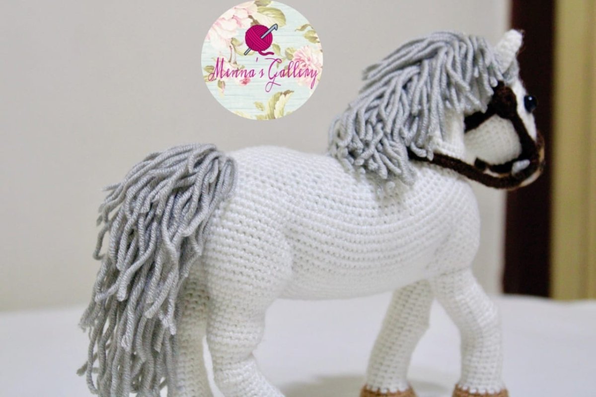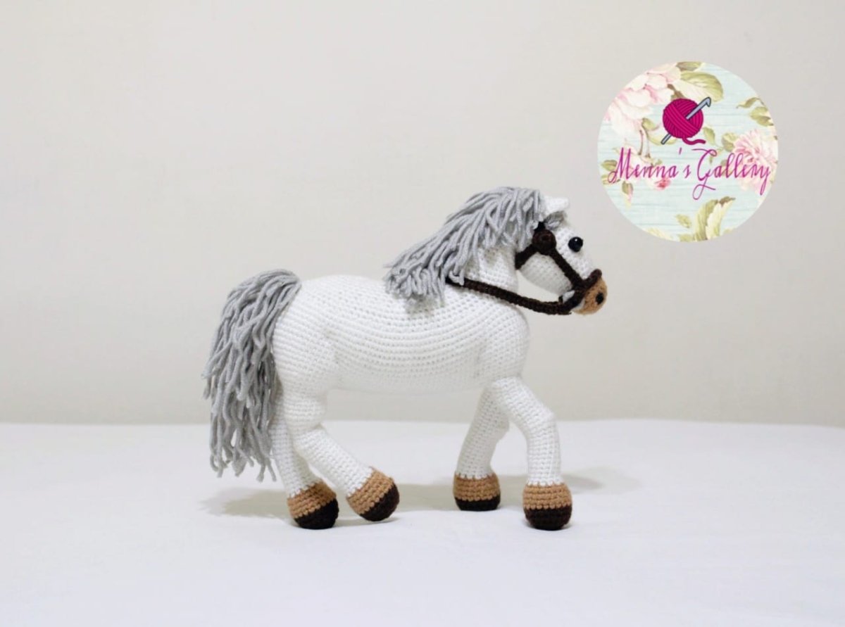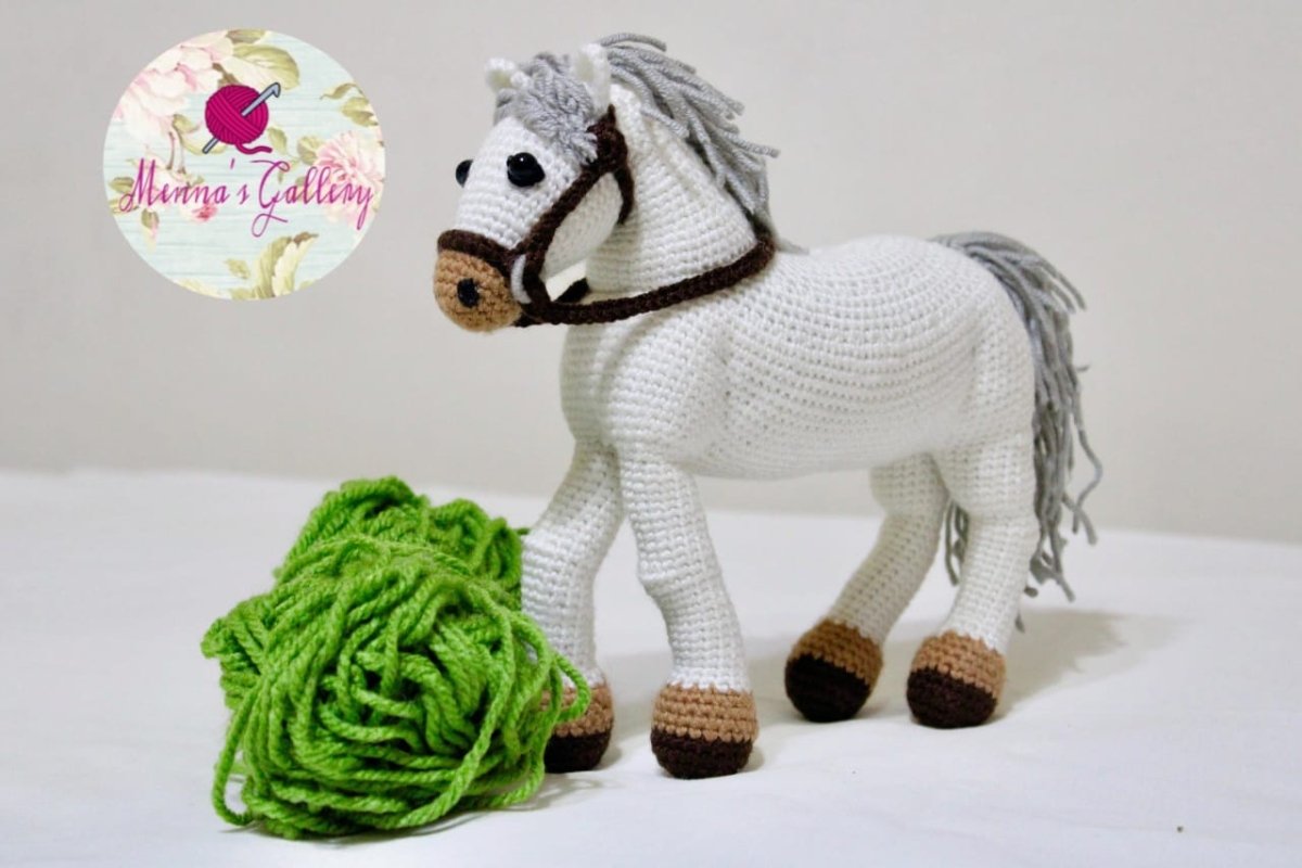 حصان كروشيه ارتفاعه ٢٠ سم من الخيوط الصوف عالية الجوده .