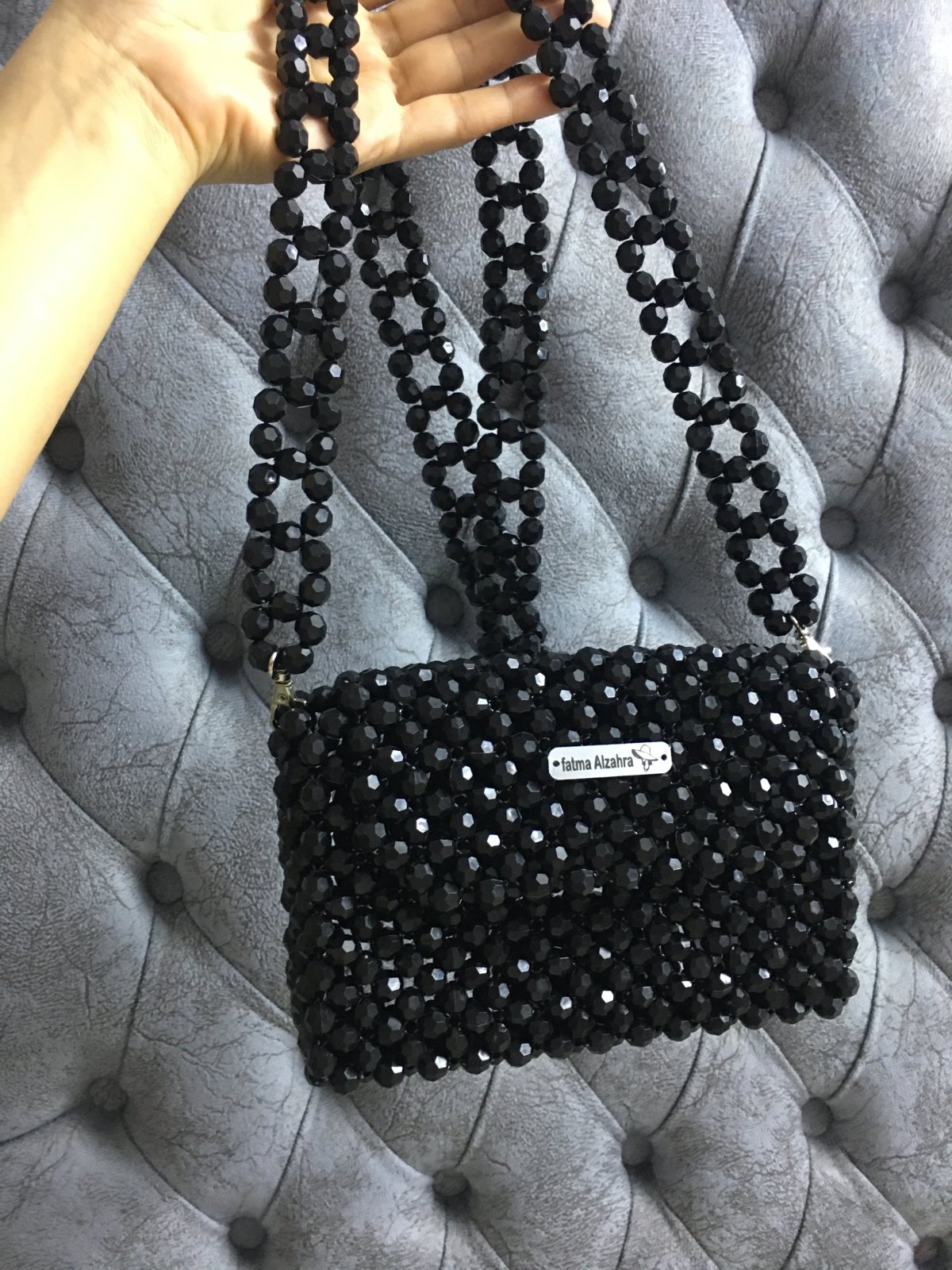 شنطة هاند ميد باللون الاسود مصنوعة من الكرستال الامع ، قوية متينة ، تناسب كل احتيجاتك اليومية فايمكنك حمل فيها الهاتف والمحفظة والمفاتيح وغيرها