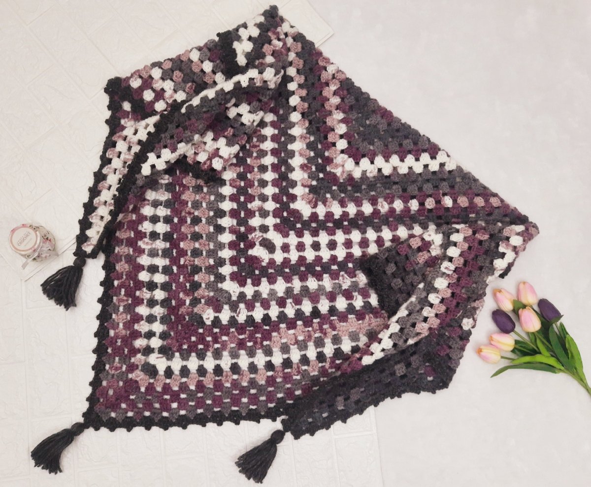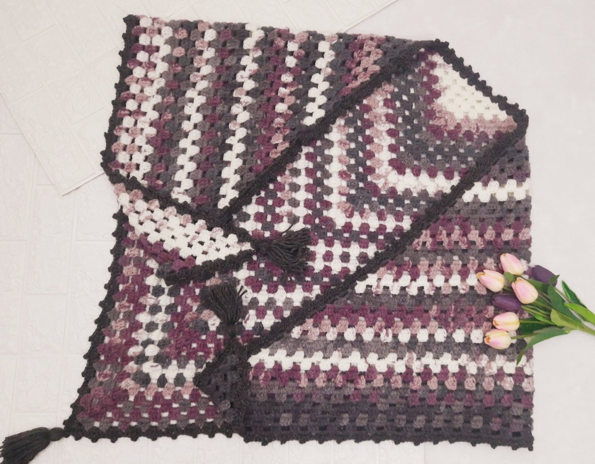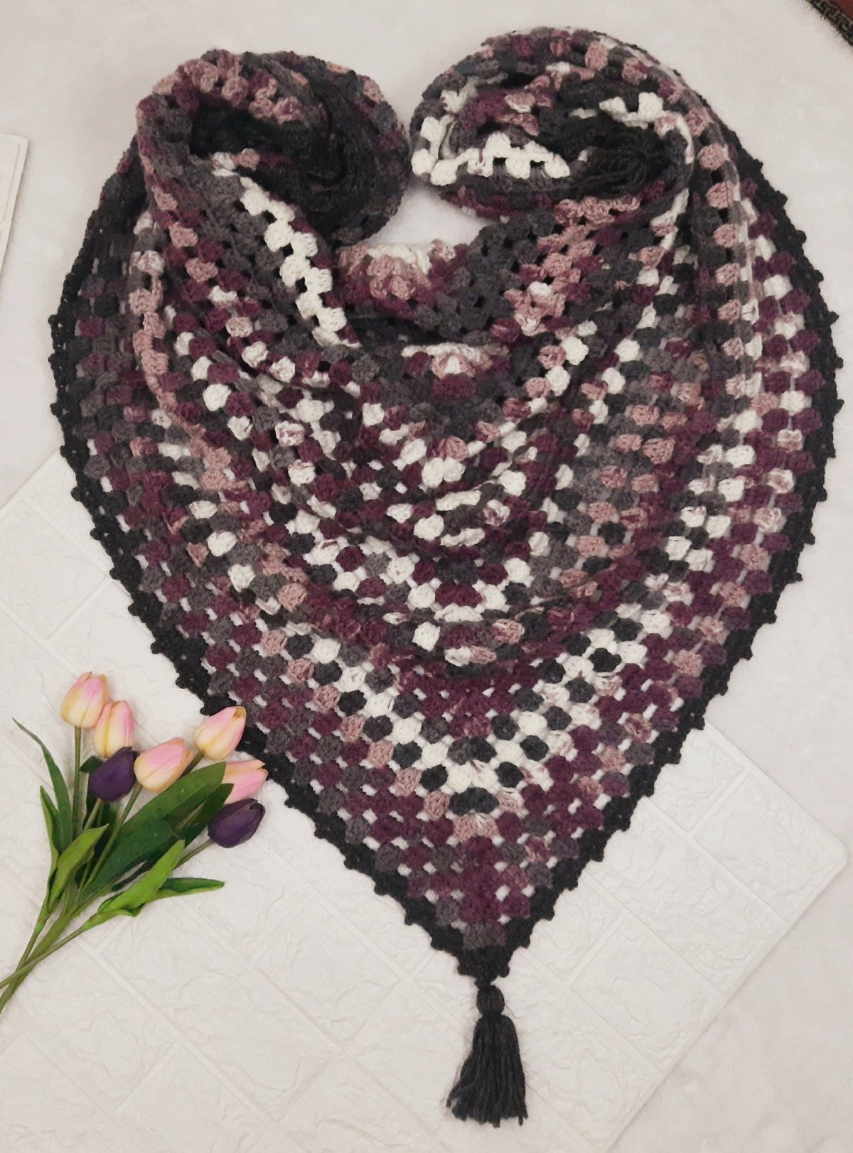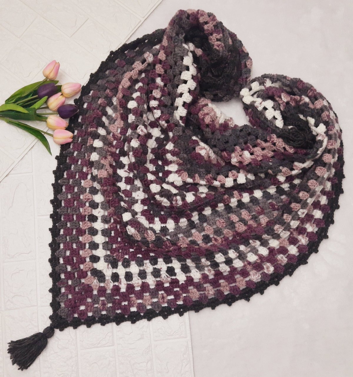 شال مثلث شتوى مشغول بخيط صوف تركى جودة ممتازة .